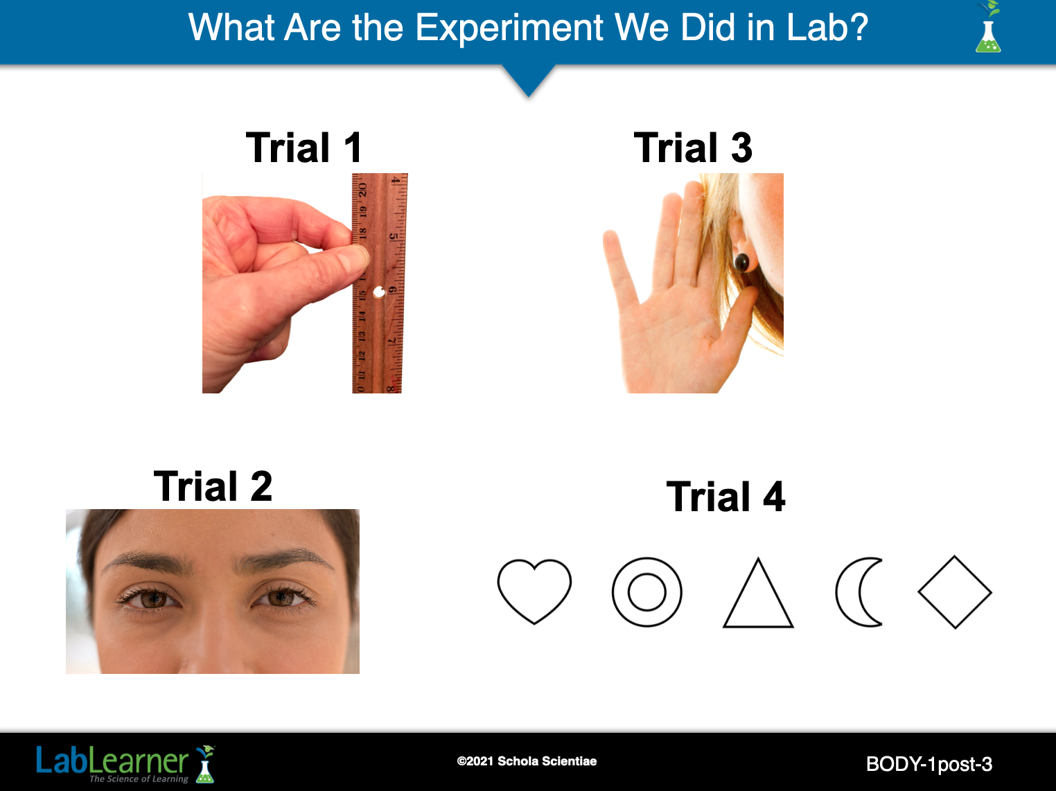 In this PostLab session, we will go over the experiences and results from the Lab for Investigation 1 and incorporate a more detailed discussion of the senses and how the brain is involved in interpreting information that is obtained through our senses.