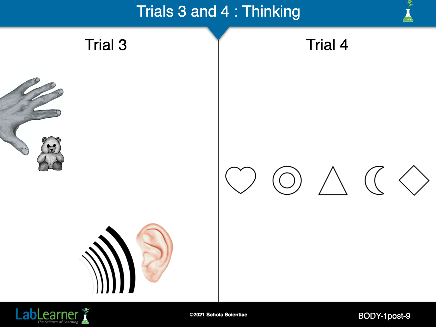 Trial 4: Ask, “When you tried to remember the pattern of shapes, did you do something? Did your brain tell you to move or to perform an activity?” No, when students tried to remember, they were thinking and processing, but not moving.