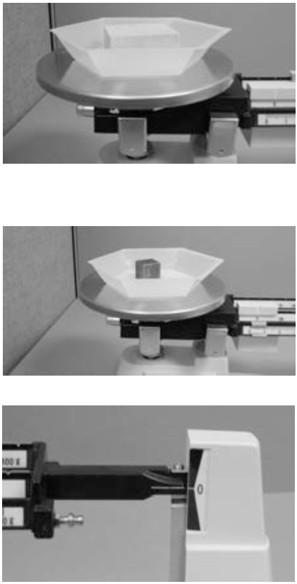 7. Some substances are solids that are not easily divided or separated and the indicator may not align properly with the center graduation. When this happens, move the poises until the two marks align. Record the final mass of the container plus the substance and subtract the mass of the weighing dish to find the final mass of the substance.