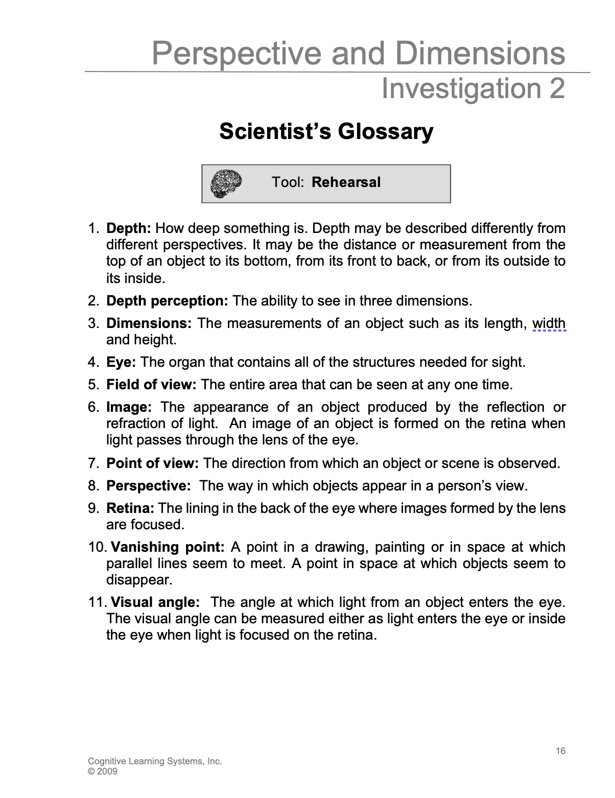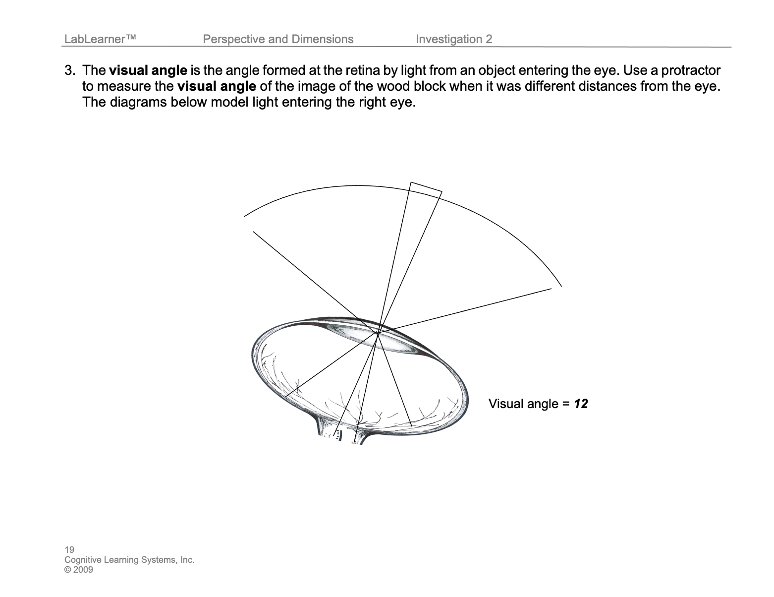 6. Tell students that scientists usually use another type of measurement to compare images formed on the retina. Instead of ratios, they often use angles ( θ ). Direct students’ attention to the term visual angle in their Scientist Glossary: