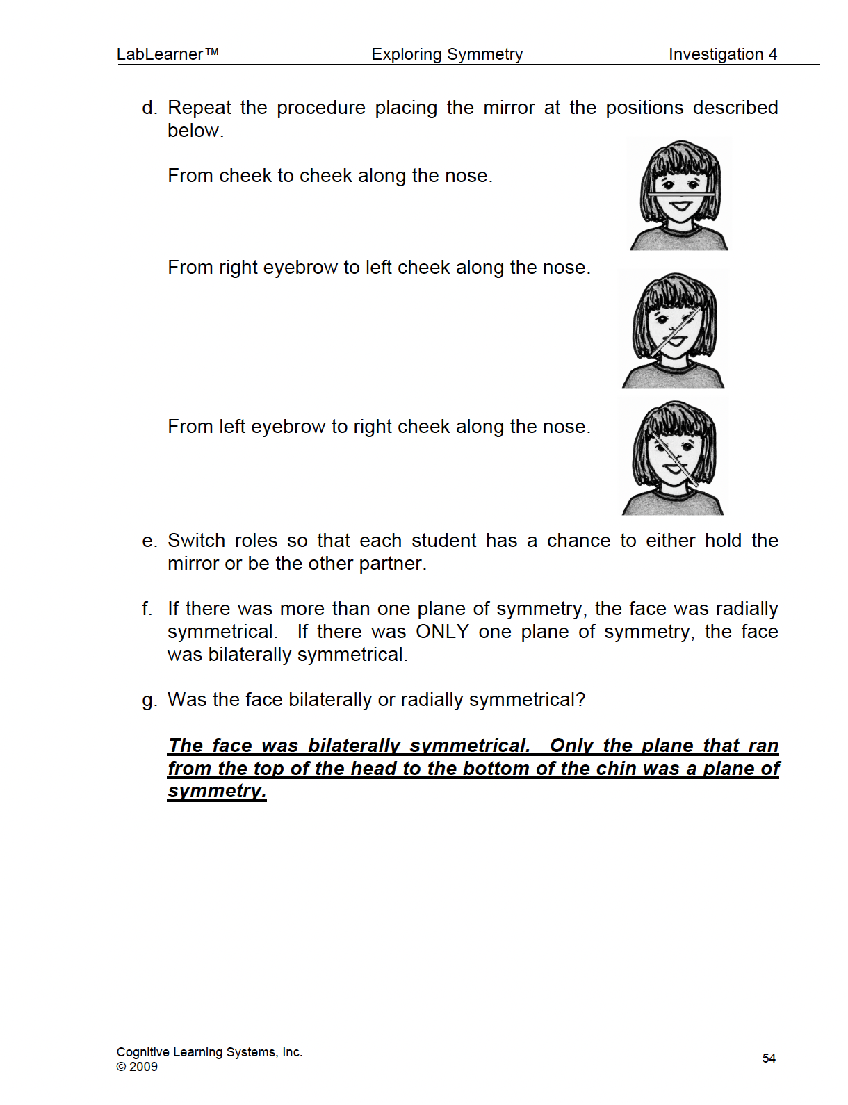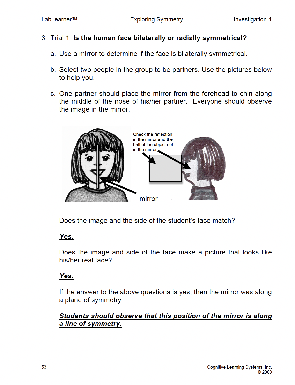 Objects that are radially symmetrical have more than one plane of symmetry. As students complete this Trial, ask them to consider the following question: Is the human face bilaterally or radially symmetrical?