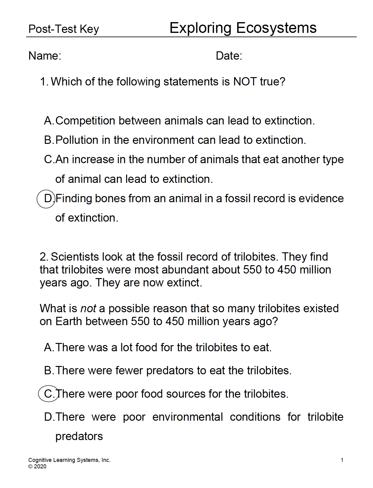 Exploring Ecosystems: Investigation 6 - Performance Assessment
