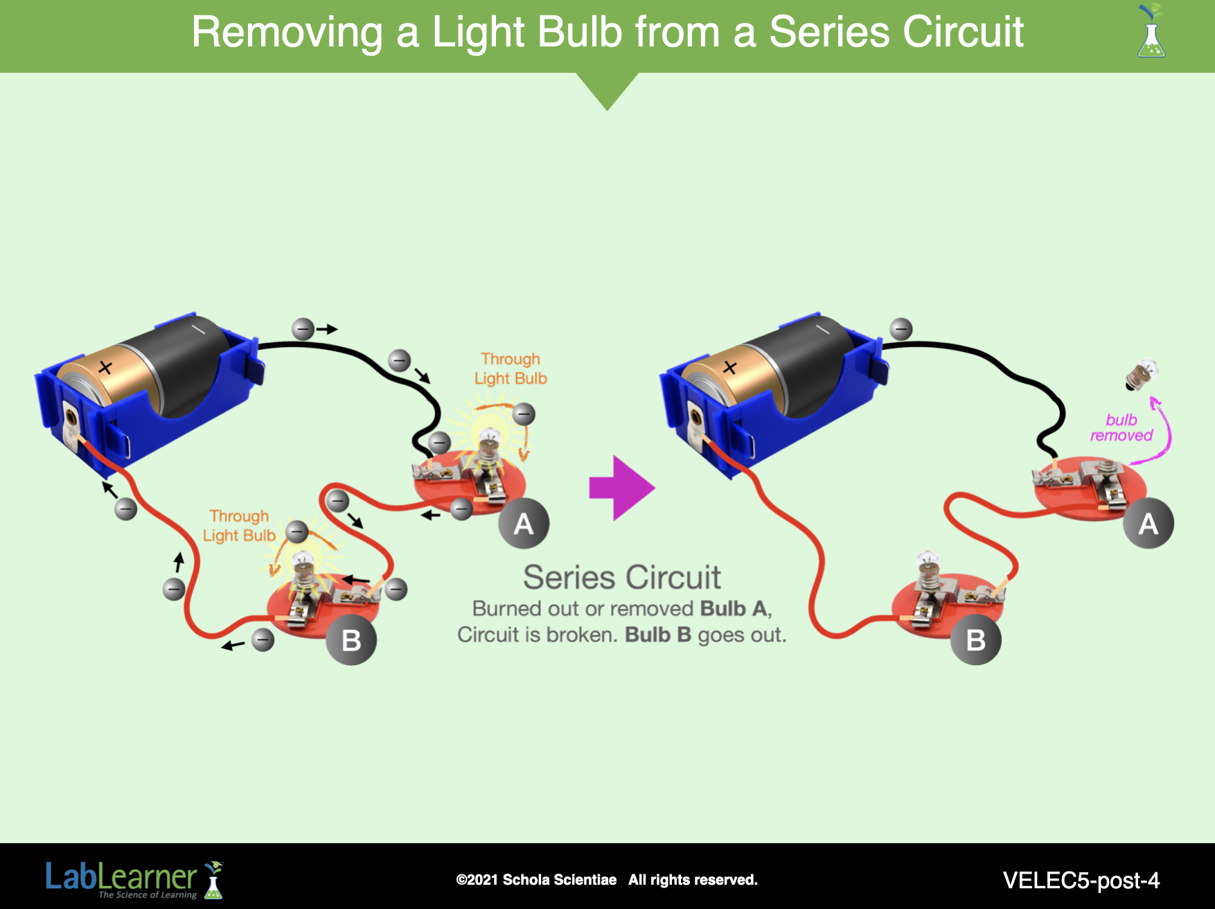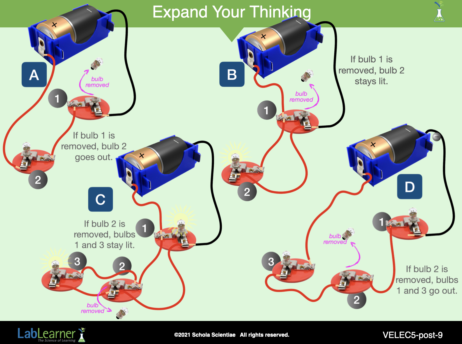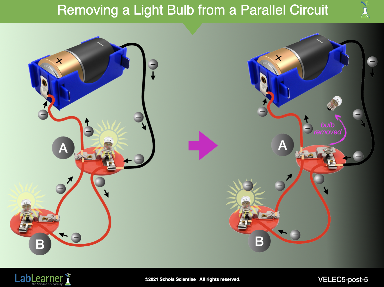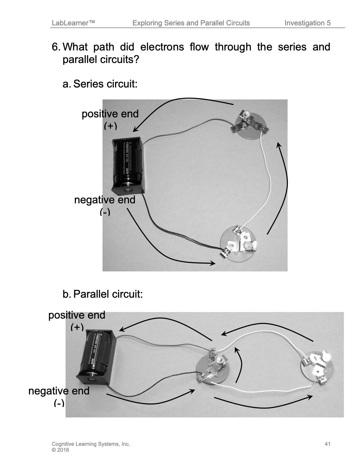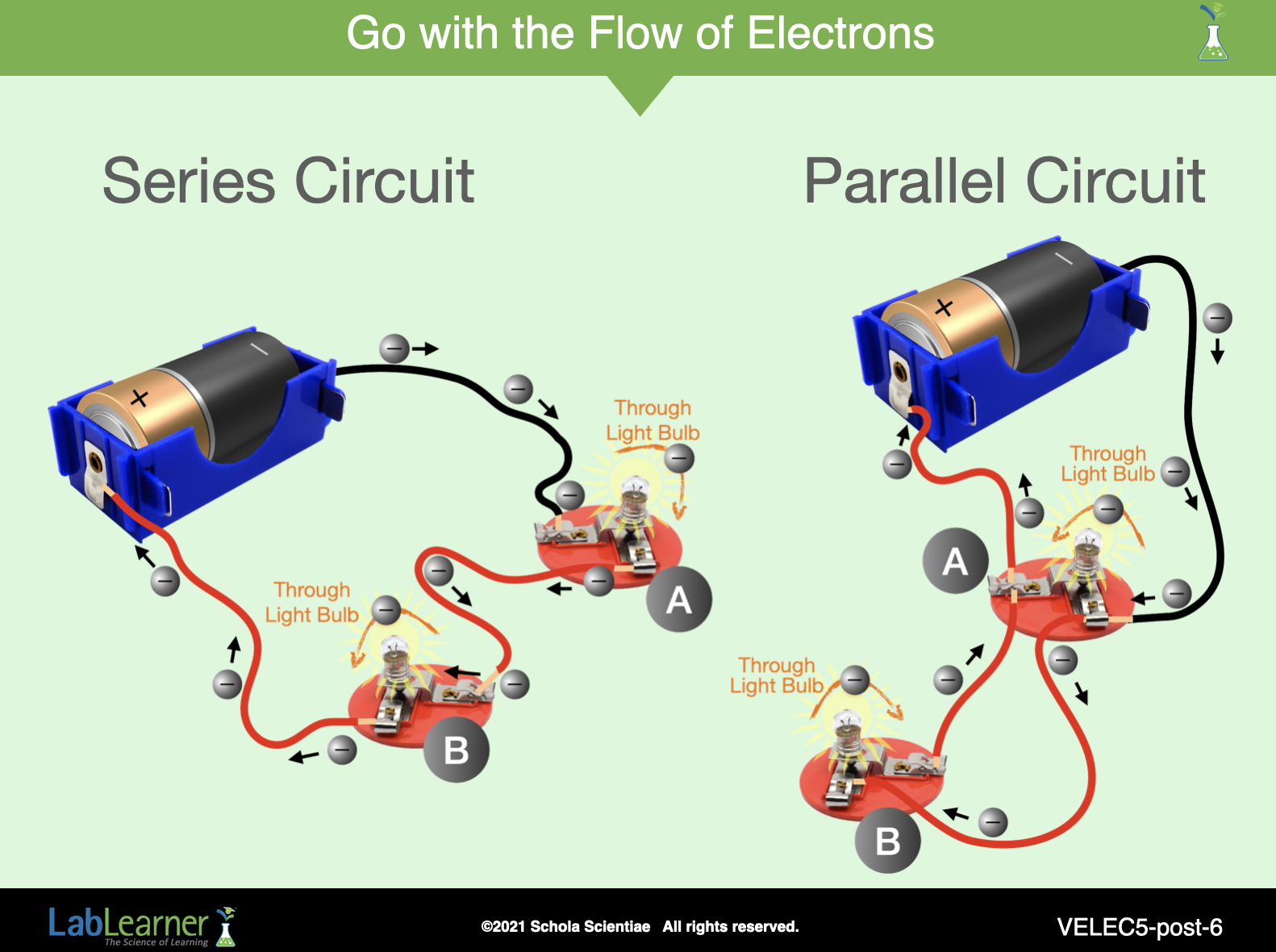 Review the flow of electrons through the circuits with the class.