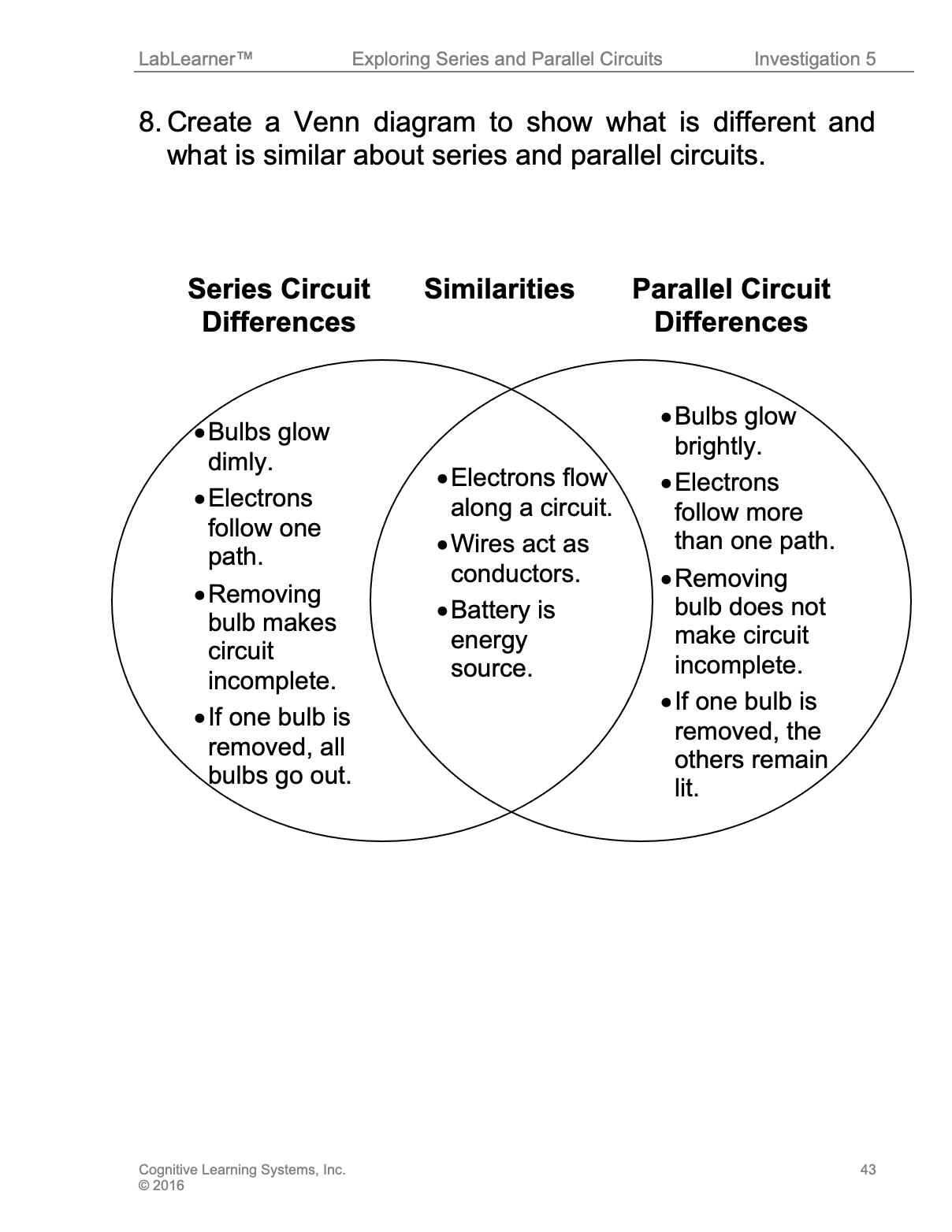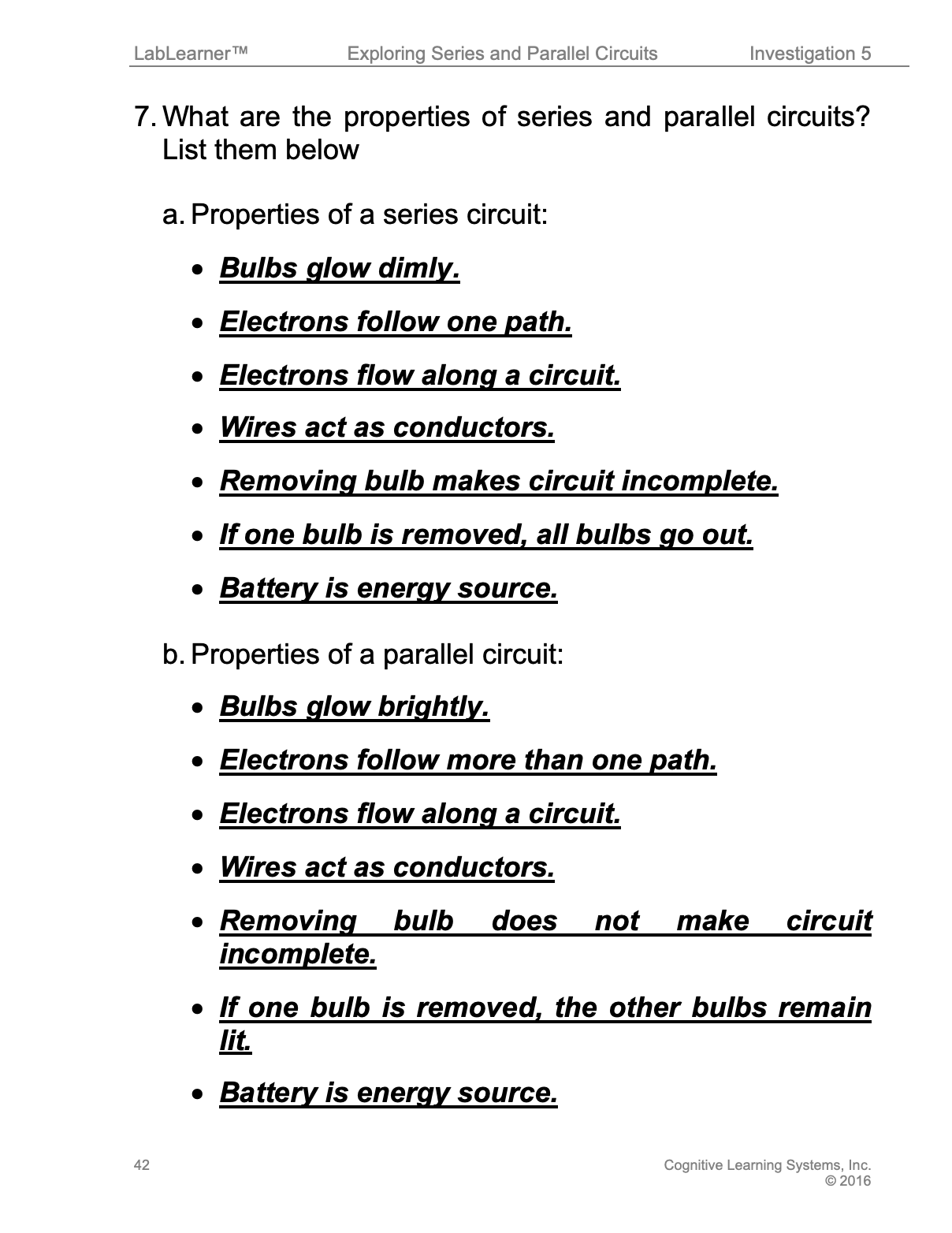 This is the fifth Investigation of the LabLearner CELL Exploring Electricity. In it, students learned about series and parallel electrical circuits.