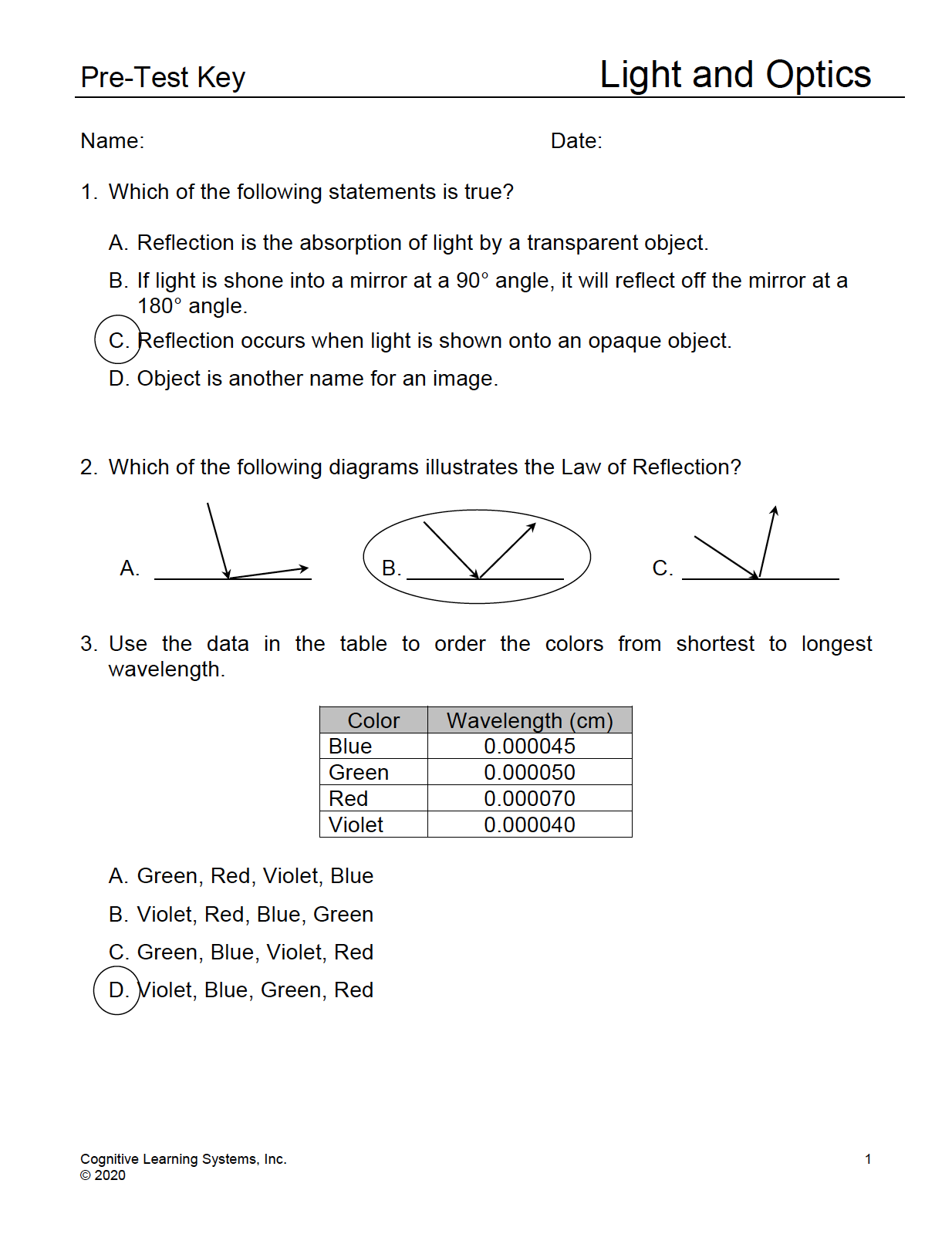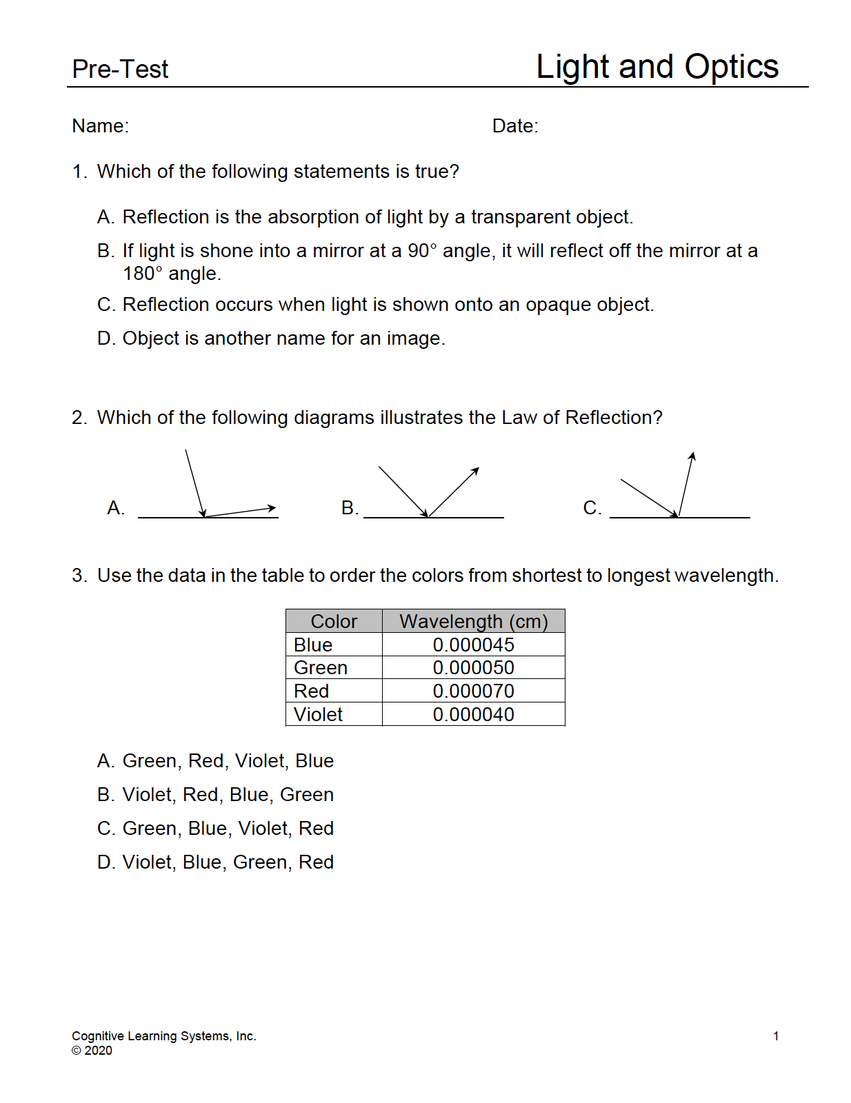 Light and Optics: Investigation 2 - Reflection