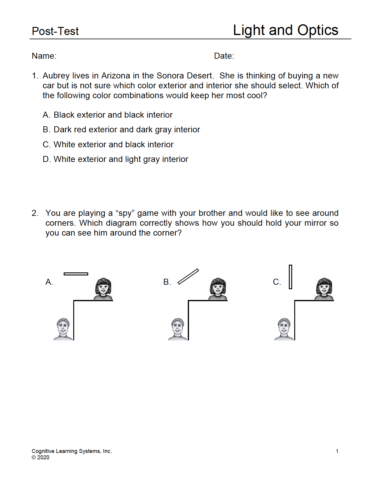 Light and Optics: Investigation 6 - Performance Assessment