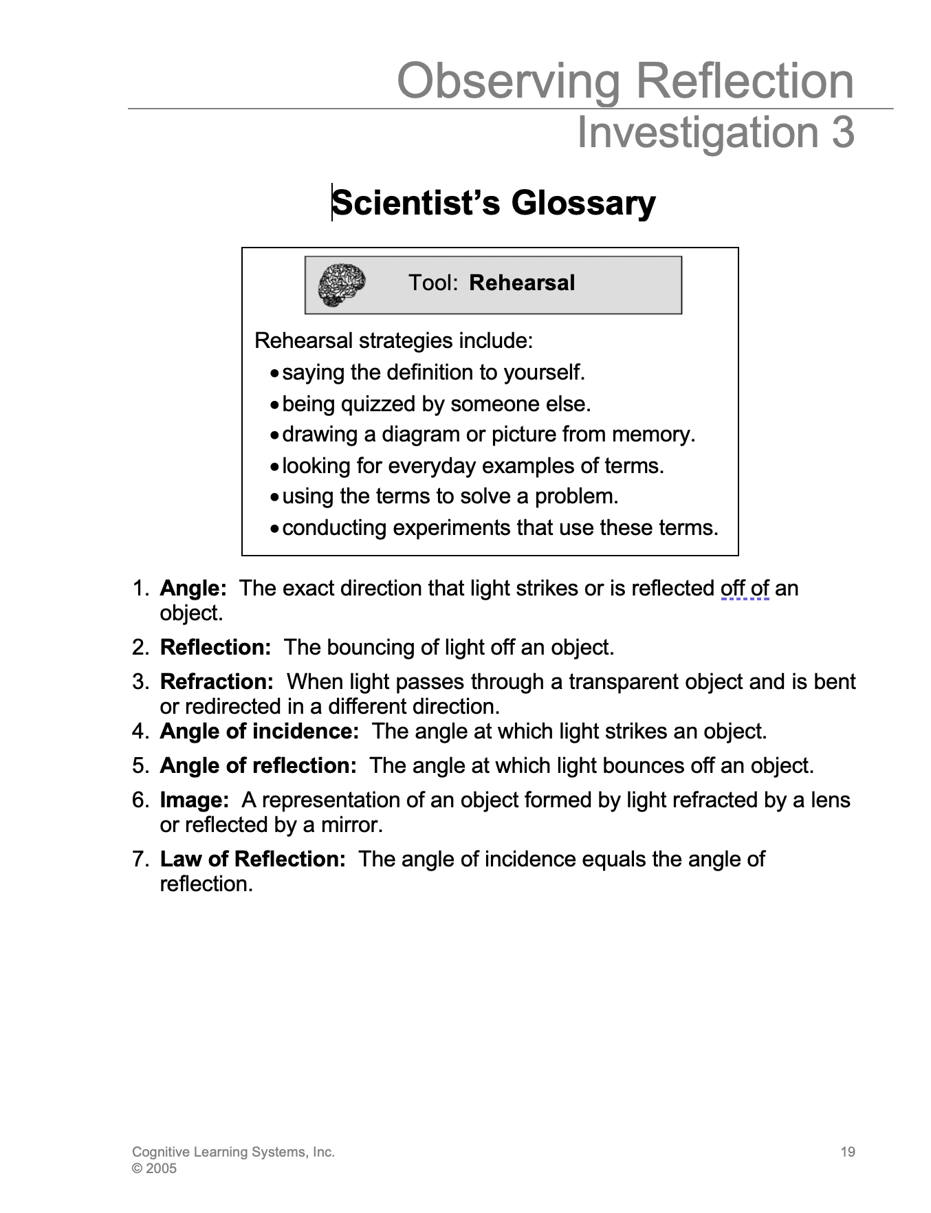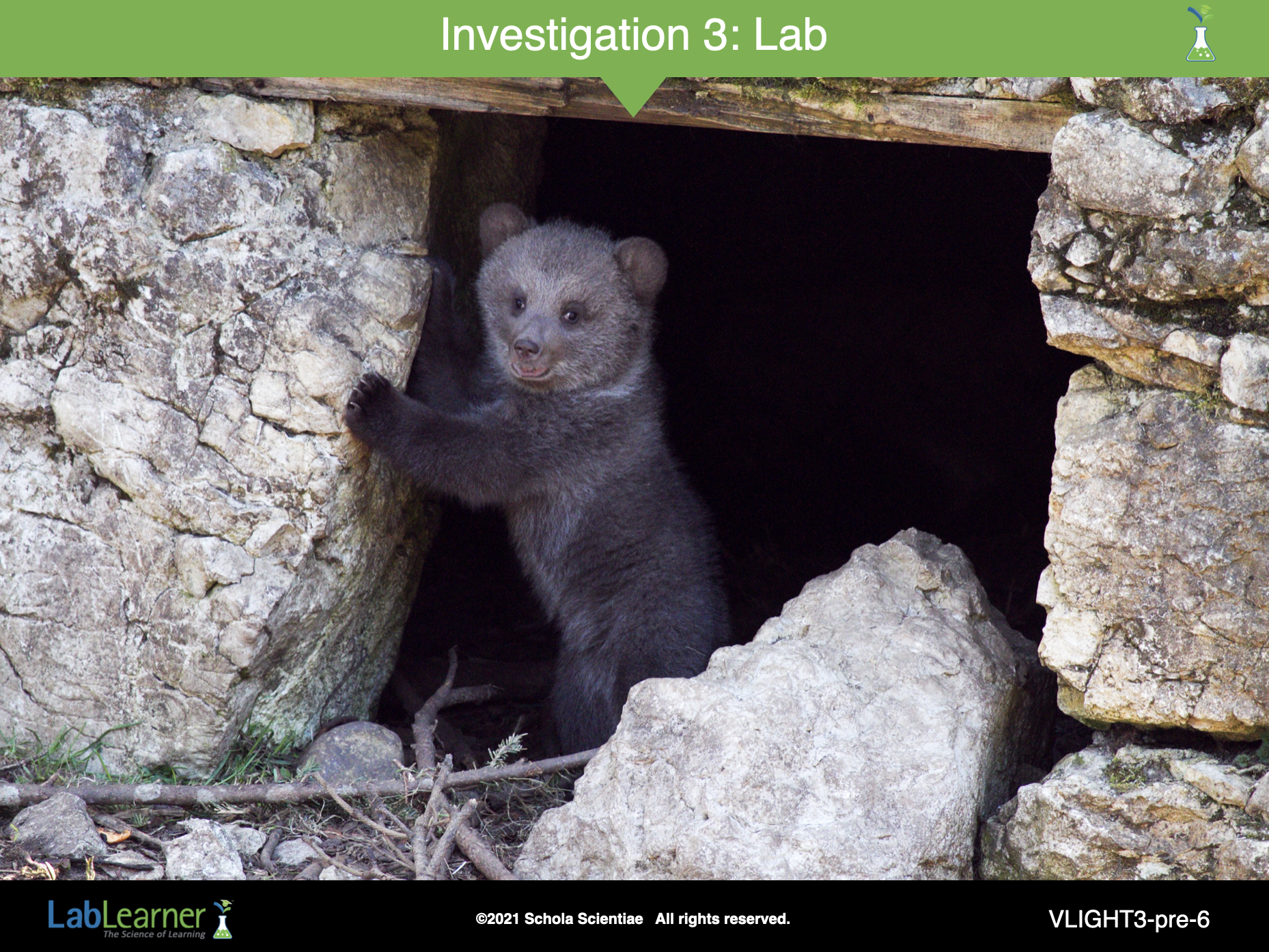 In Investigation Three, students will continue their study of light and optics. In PreLab, students will play a game to promote consolidation of the basic concepts of the transmission, absorbance, reflection, and refraction of light.
