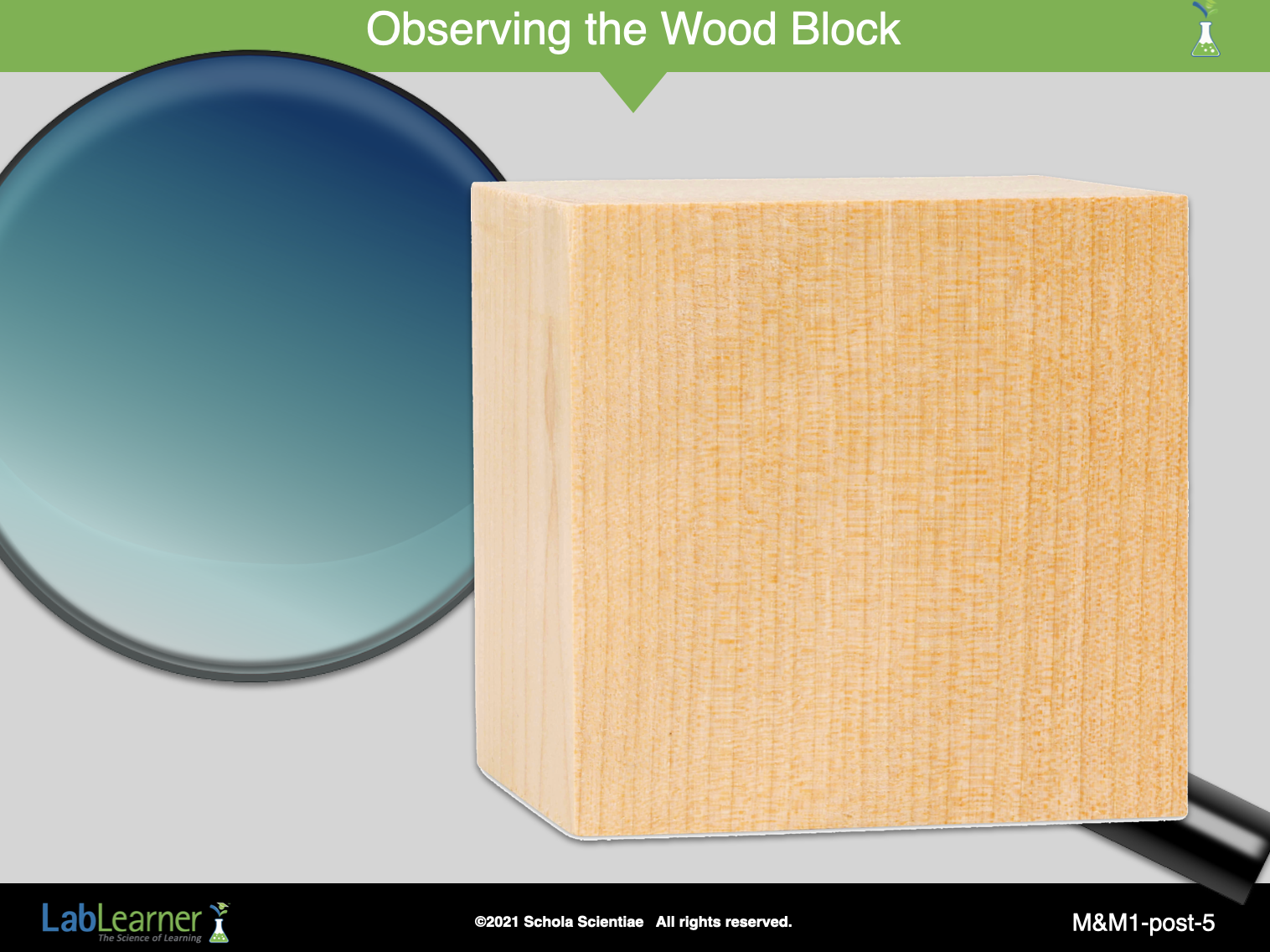 Refer to Problem 14 in students’ Student Data Record. Discuss students’ observations of the wood block with and without the hand lens.
