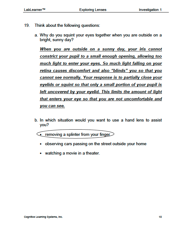 Discuss how their partner’s eye appeared with and without the hand lens. Refer to Problems 10, 11, and 12 in students’ Student Data Record.