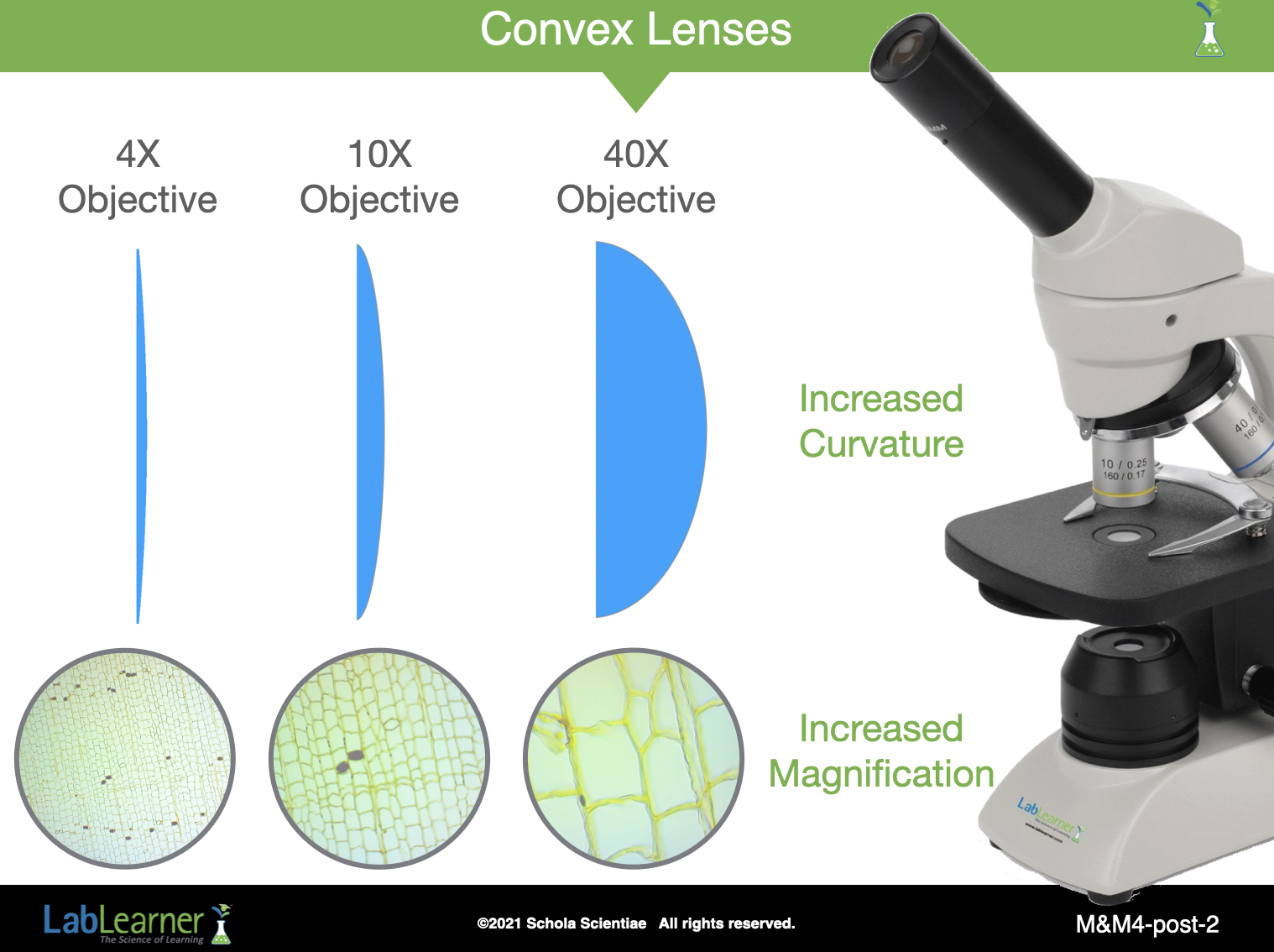 What type of lens do the hand lens and the microscopes objectives contain? Each lens is a convex lens.