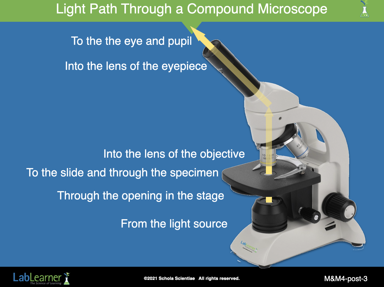 This slide provides an opportunity to trace the path of light through a compound microscope. Light travels: