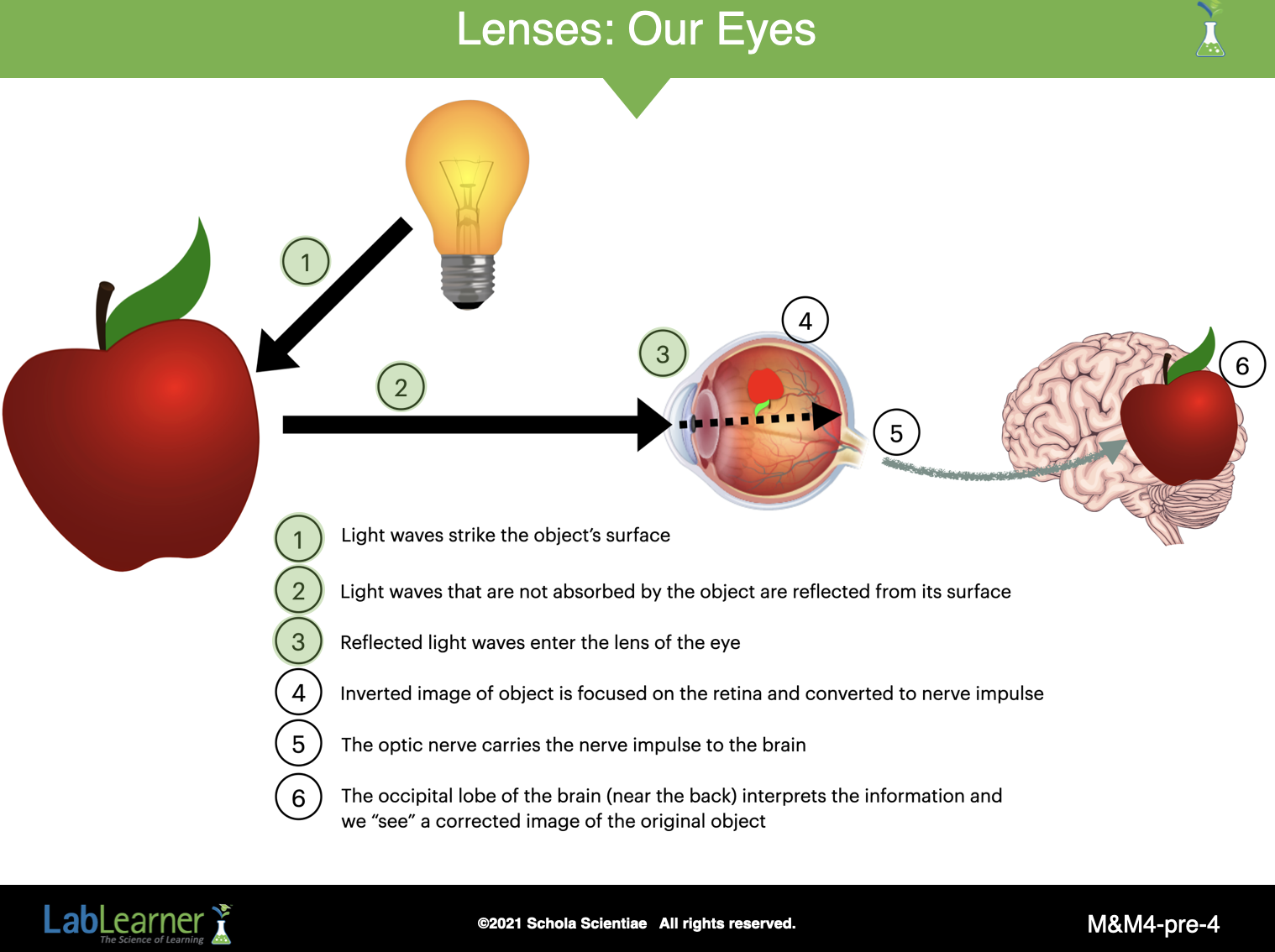 - Explain to students that light reflects off of an object and then passes through the outer layer of the eye, called the cornea.