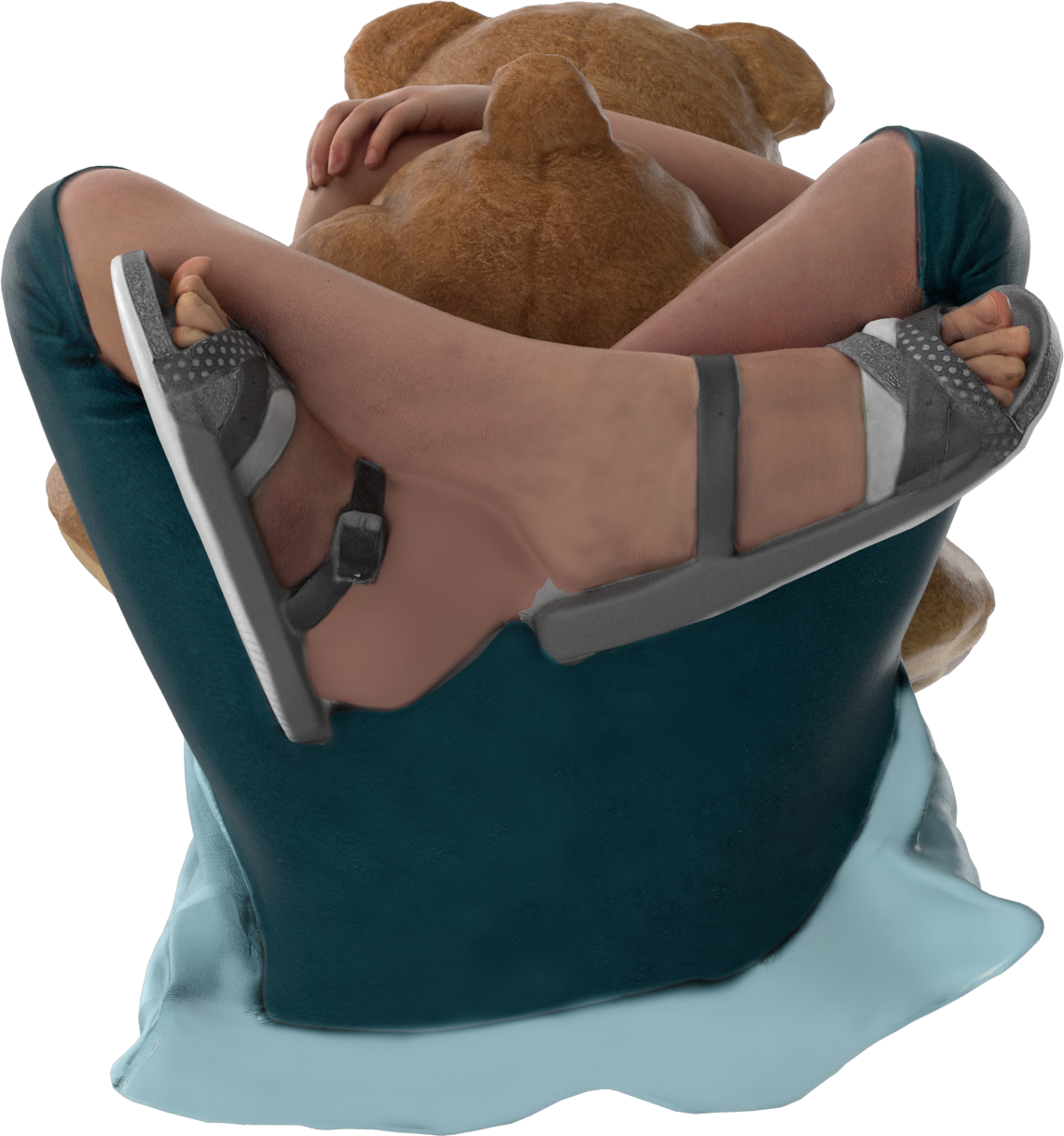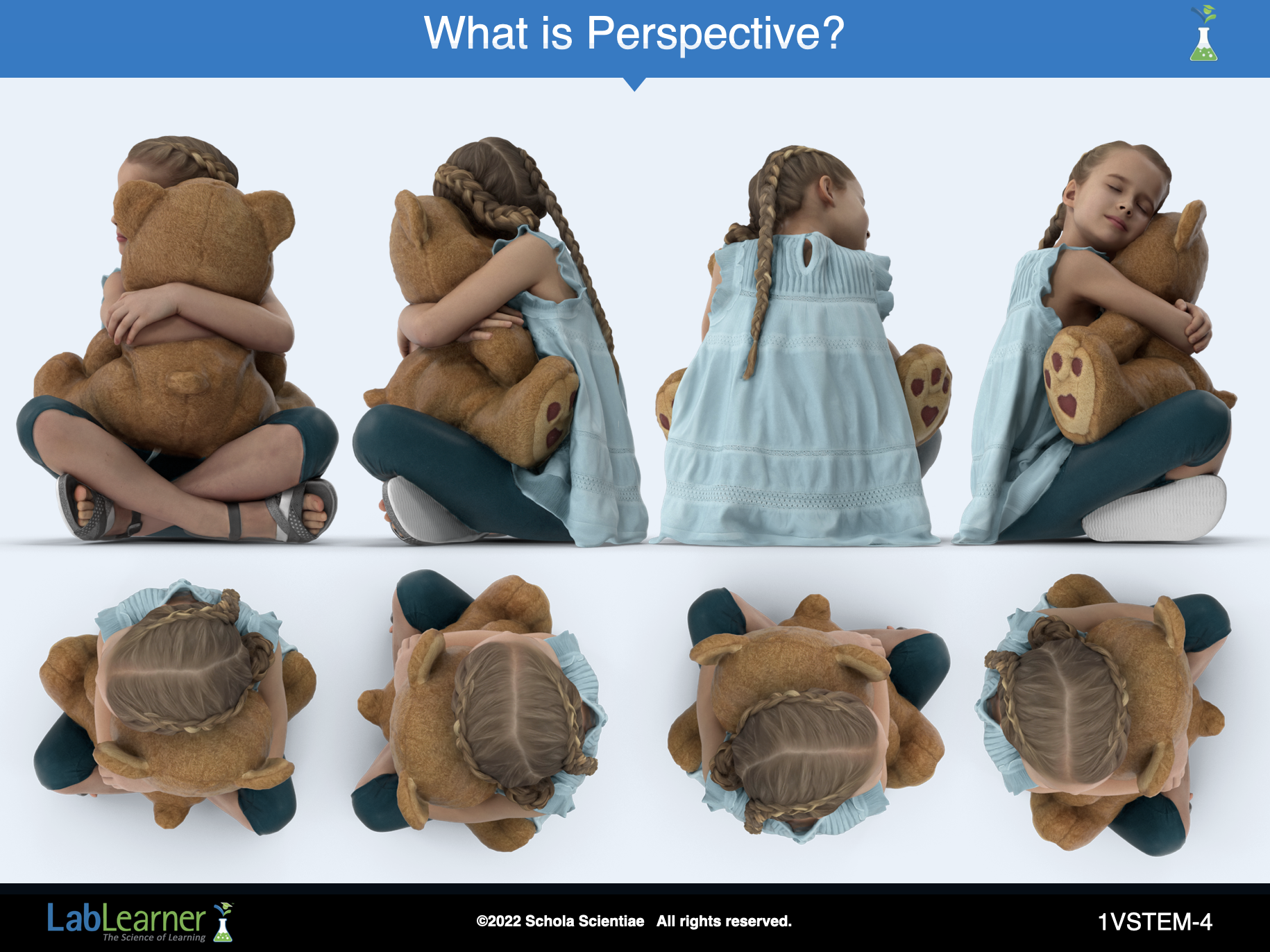 This slide shows four different perspectives of the girl and bear when viewed from the side, as well as the various perspectives from the top. A final view, from the bottom, is shown to the right.