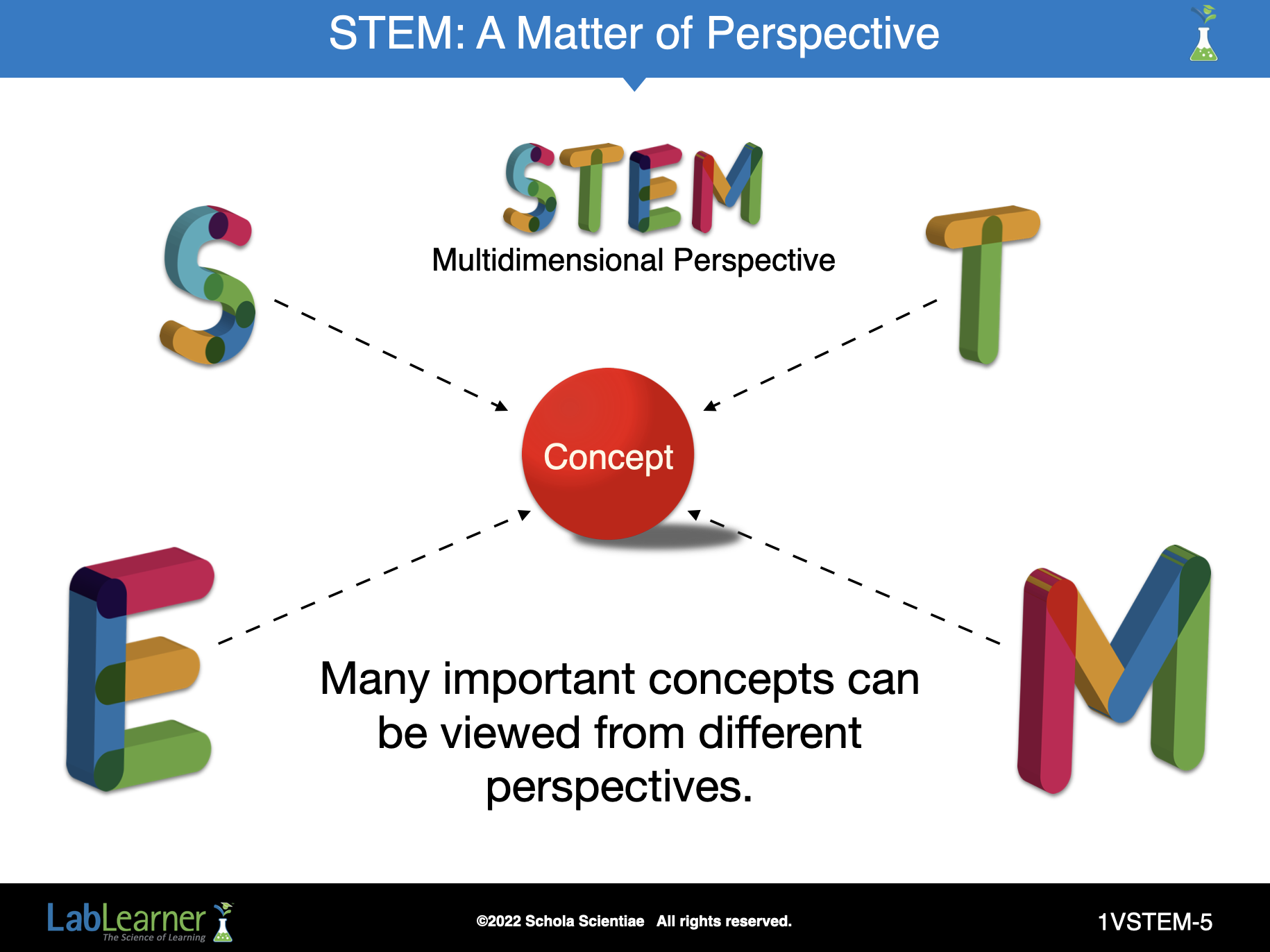 Ask students: What do you think is the meaning of this slide? Student answers may vary. In general, the central concept may be viewed from the point of view of science, mathematics, technology, and engineering.