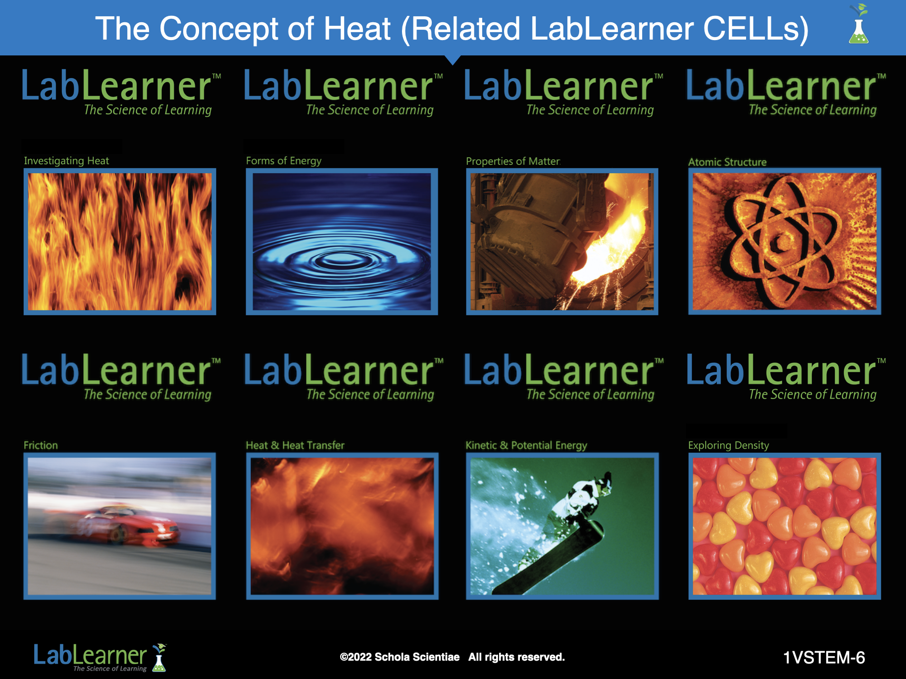 As an example of how most topics can be examined from the four corners of the STEM approach, we will use the example of heat. Students may be familiar with some aspects and information in this example of the STEM approach. The following is a list of LabLearner CELLs that covered material and concepts relevant to the example of heat (ES=elementary school CELLs, MS=middle school CELLs):