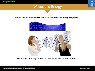 This summary slide compares the two types of waves discussed in this CAP. Students may observe that both types of waves have peaks and troughs, they both have regular patterns, they both consist of kinetic energy, and so on.