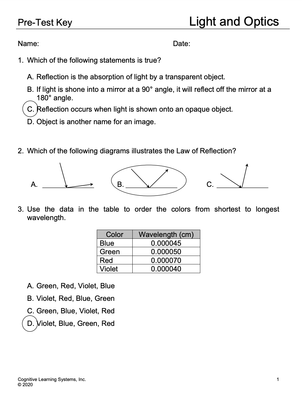 Post-Test Key
