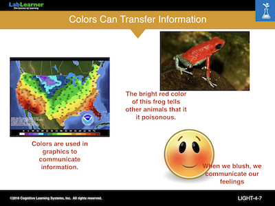 The teacher may ask students to think of other ways in which color may be used to communicate information. The next slide will give a few examples.
