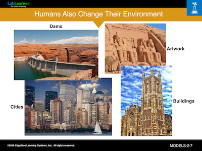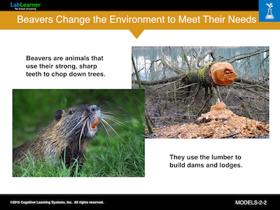Students have likely had experience thinking about how to model different animals or plants, whether through experiments or “playing pretend.” In this CAP we take a bit of a turn and describe to students how animals and even plants can change or modify their environment to suit their own needs. Animals and plants that change their environment for their own use are sometimes call ecosystem engineers. Man is the greatest ecosystem engineer alive today or has perhaps ever lived.