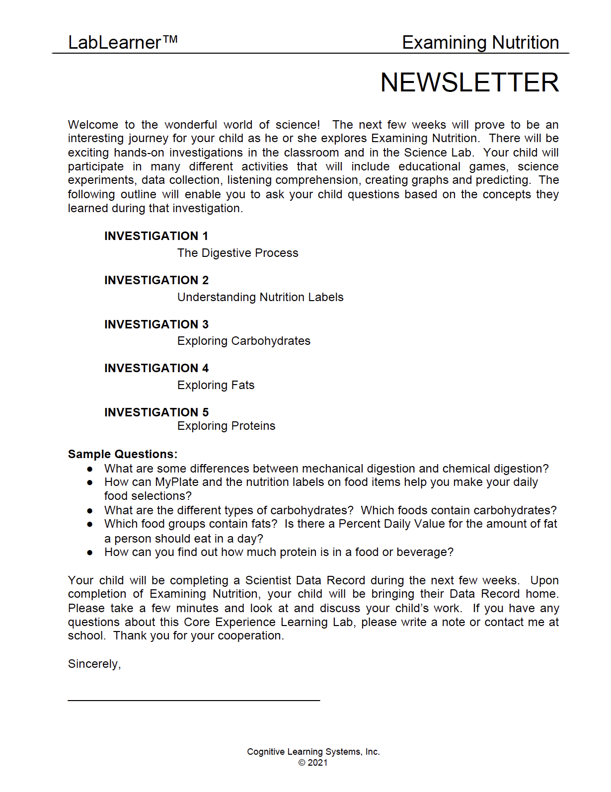 Investigation 2: Understanding Nutrition Labels