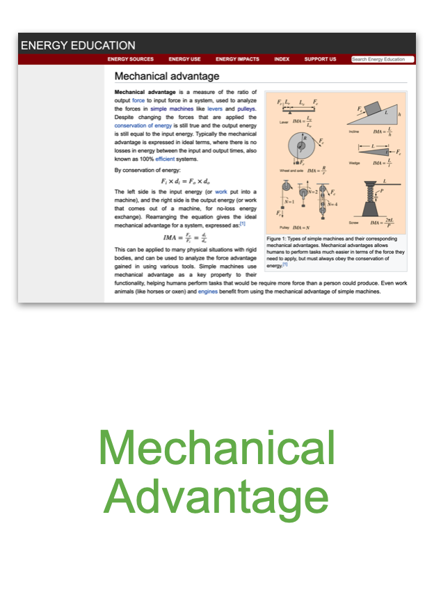 Through investigations centered on simple machines such as the pulley, the lever, and the inclined plane, students will discover the advantages of using simple machines. Students will find that the single fixed pulley offers an advantage by reversing the direction of the applied force. The lever and the inclined plane, however, offer a different type of advantage by altering the force and distance. As the applied force decreases, the distance over which that force is applied must increase. Likewise, the inverse is also true. As the distance over which the force is applied decreases, the applied force must increase.