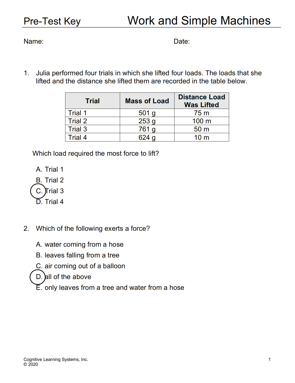 Pre-Test Key