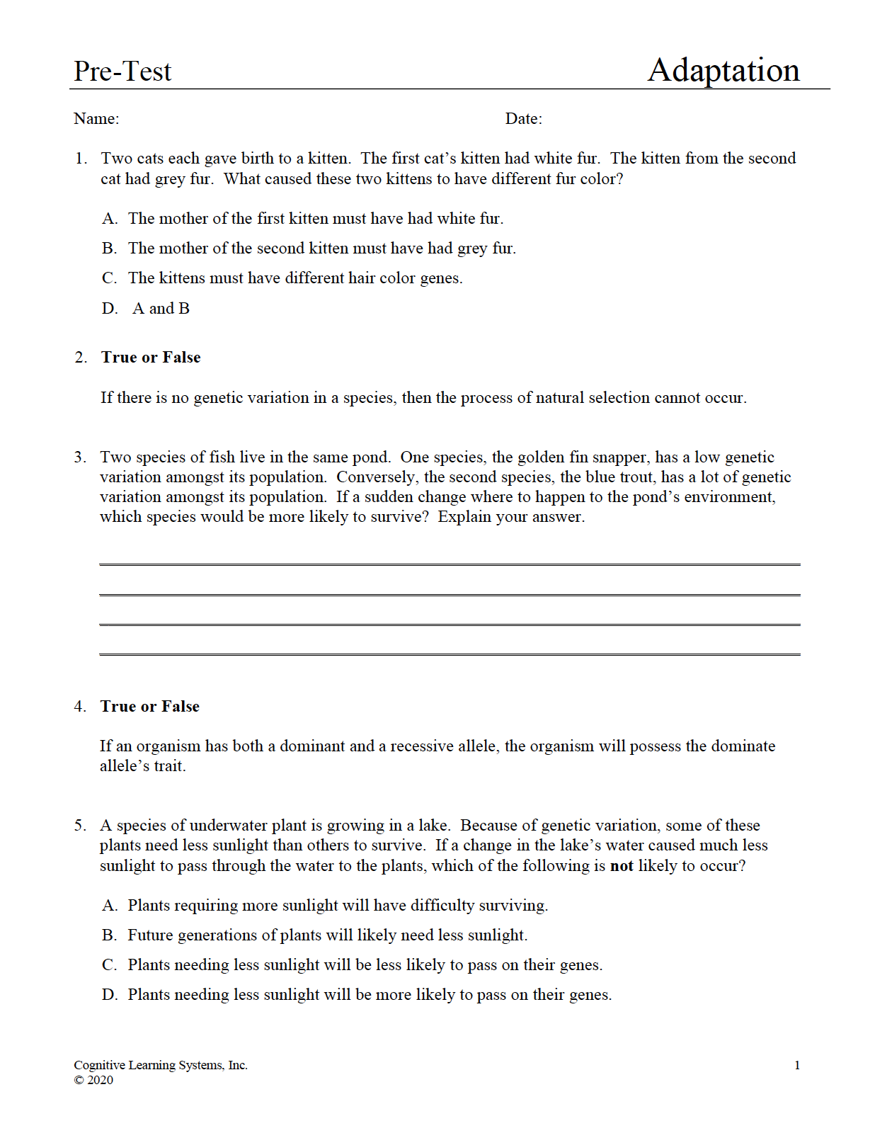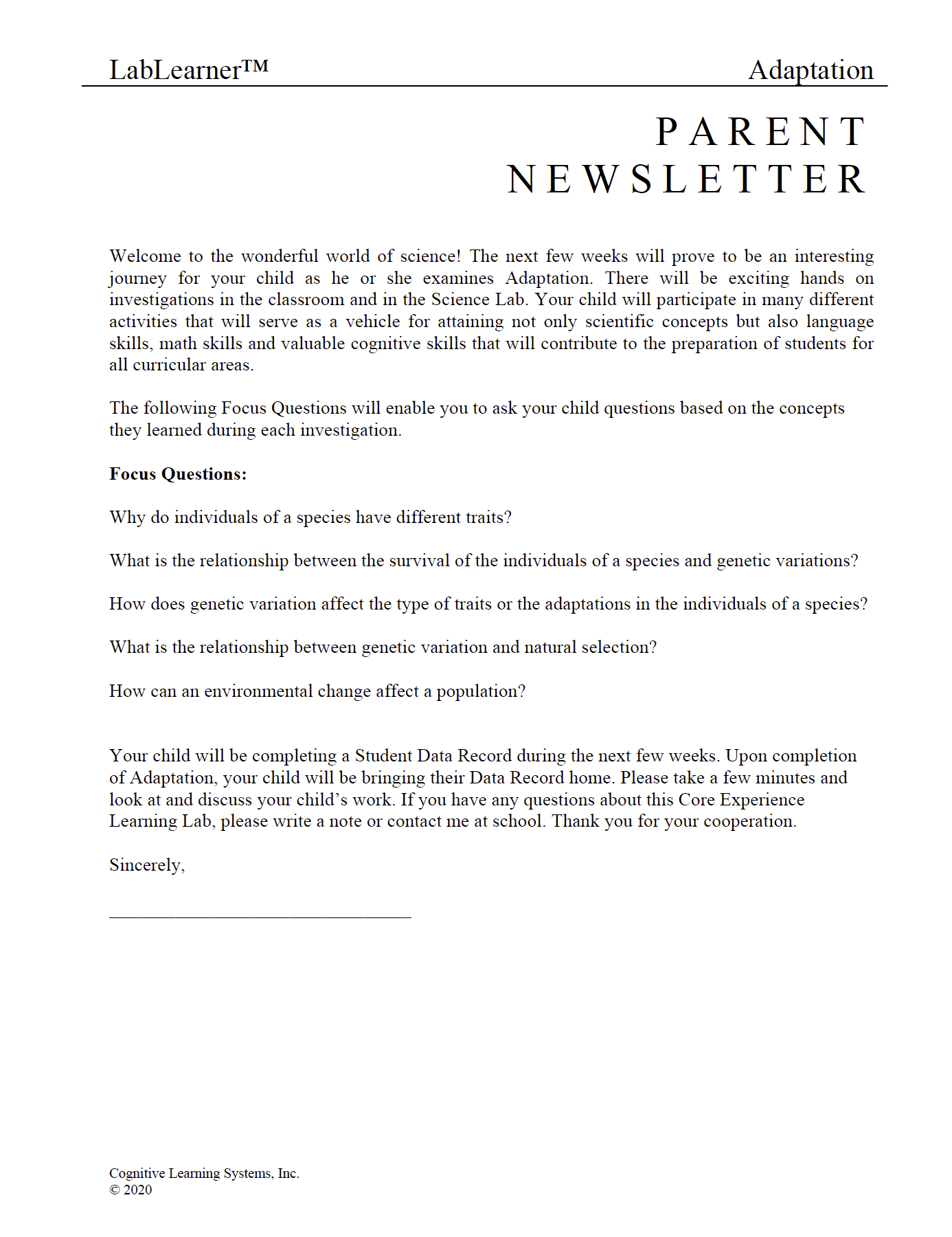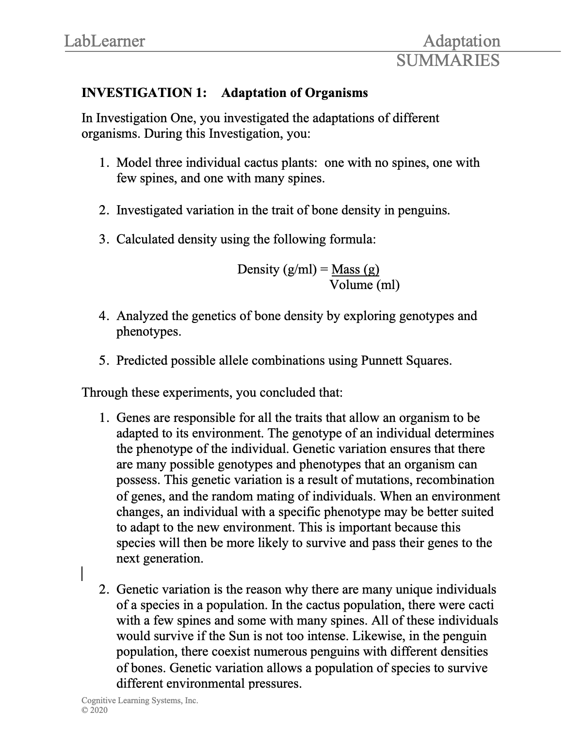 Adaptation: Investigation 1 - Adaptation of Organisms