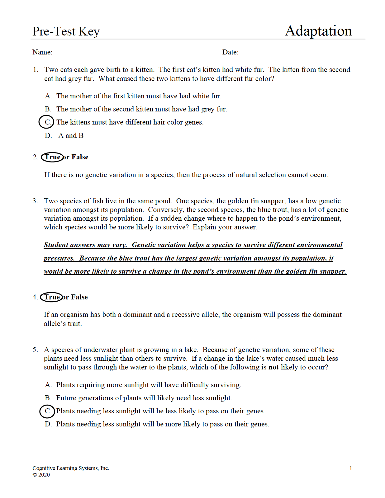 Adaptation: Investigation 2 -Genetic Variation and Natural Selection