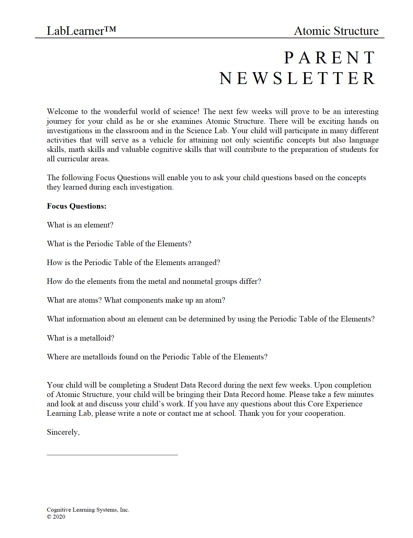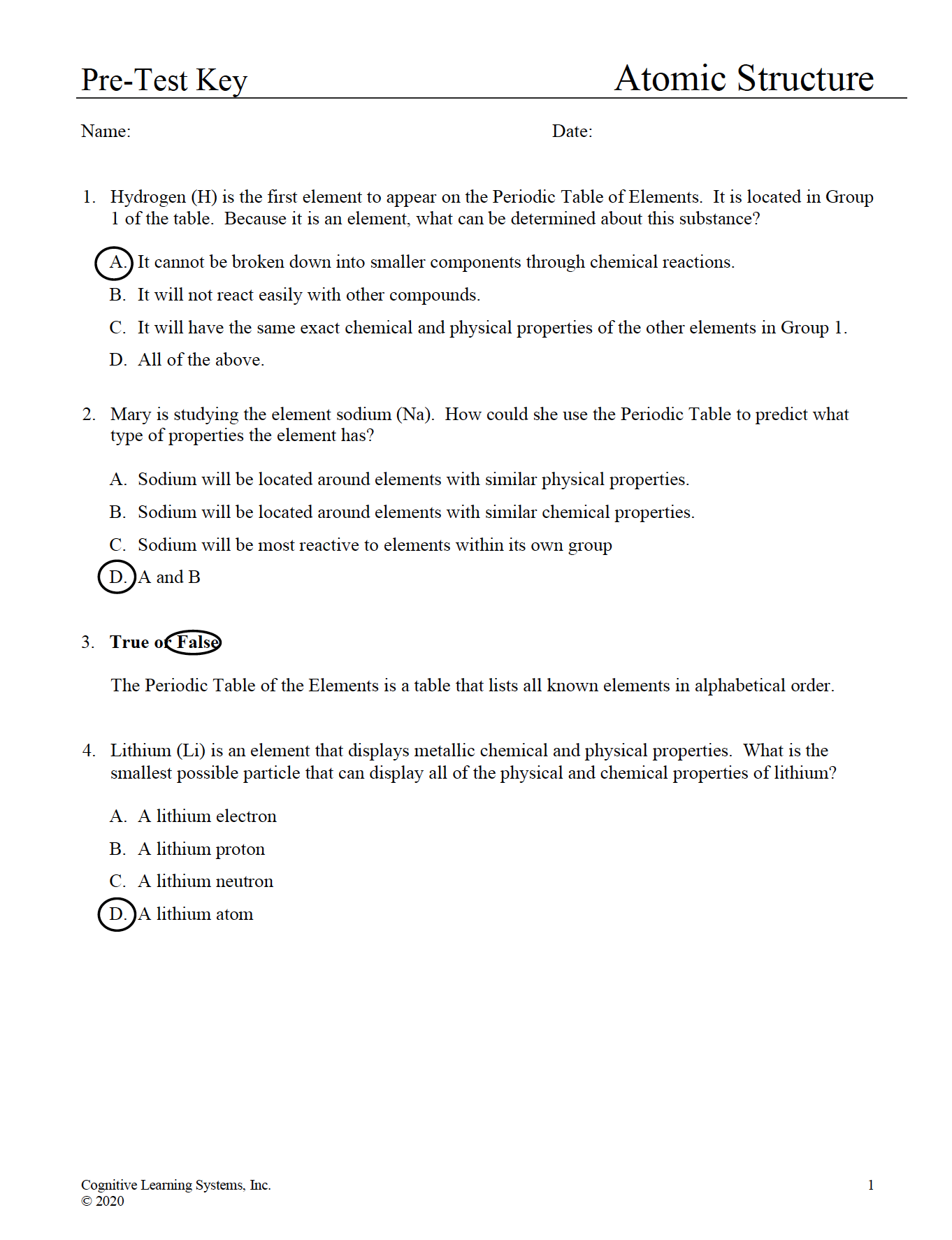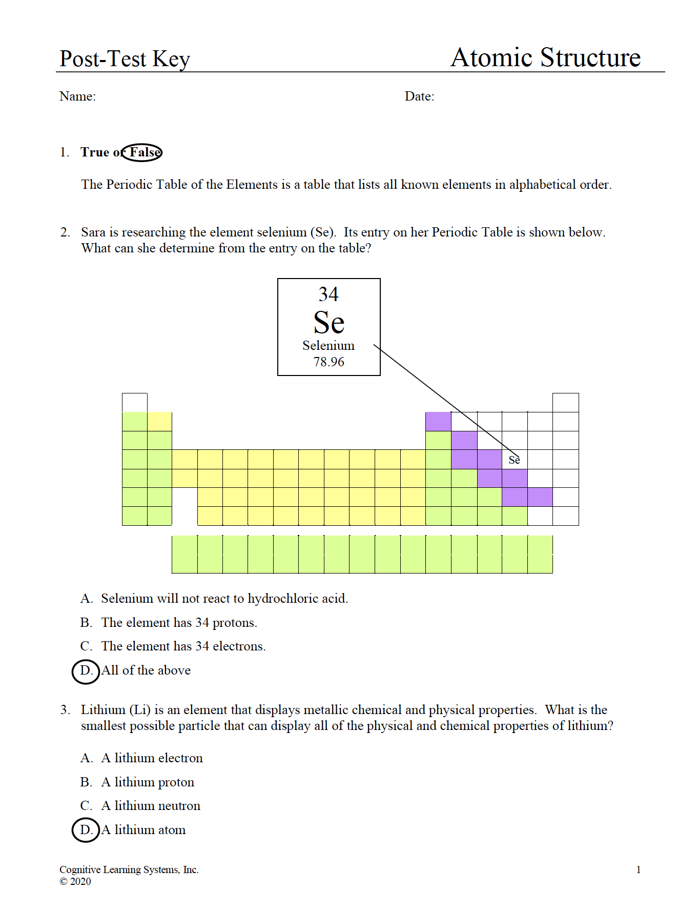 Atomic Structure: Investigation 1 - Periodic Table of Elements