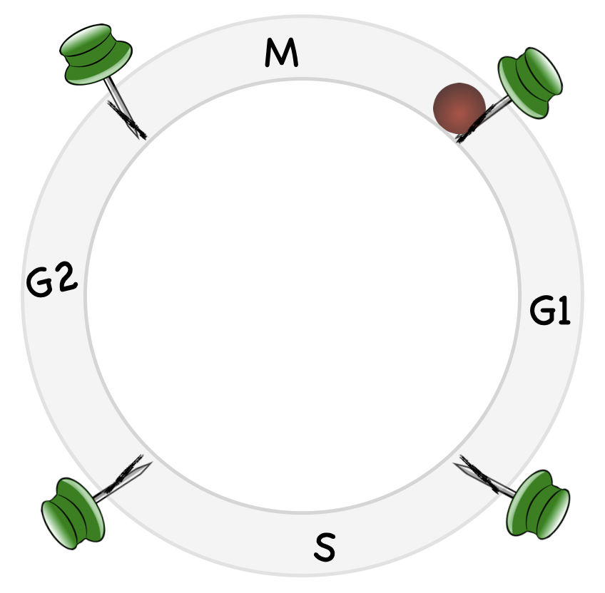 - Label each section to represent one phase of the cell cycle in the correct order on the ring: M, G1, S, or G2. Use the diagram in the Background box to help you order the phases correctly.