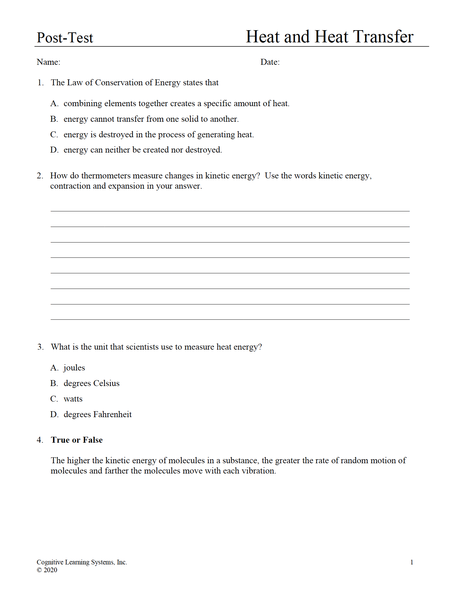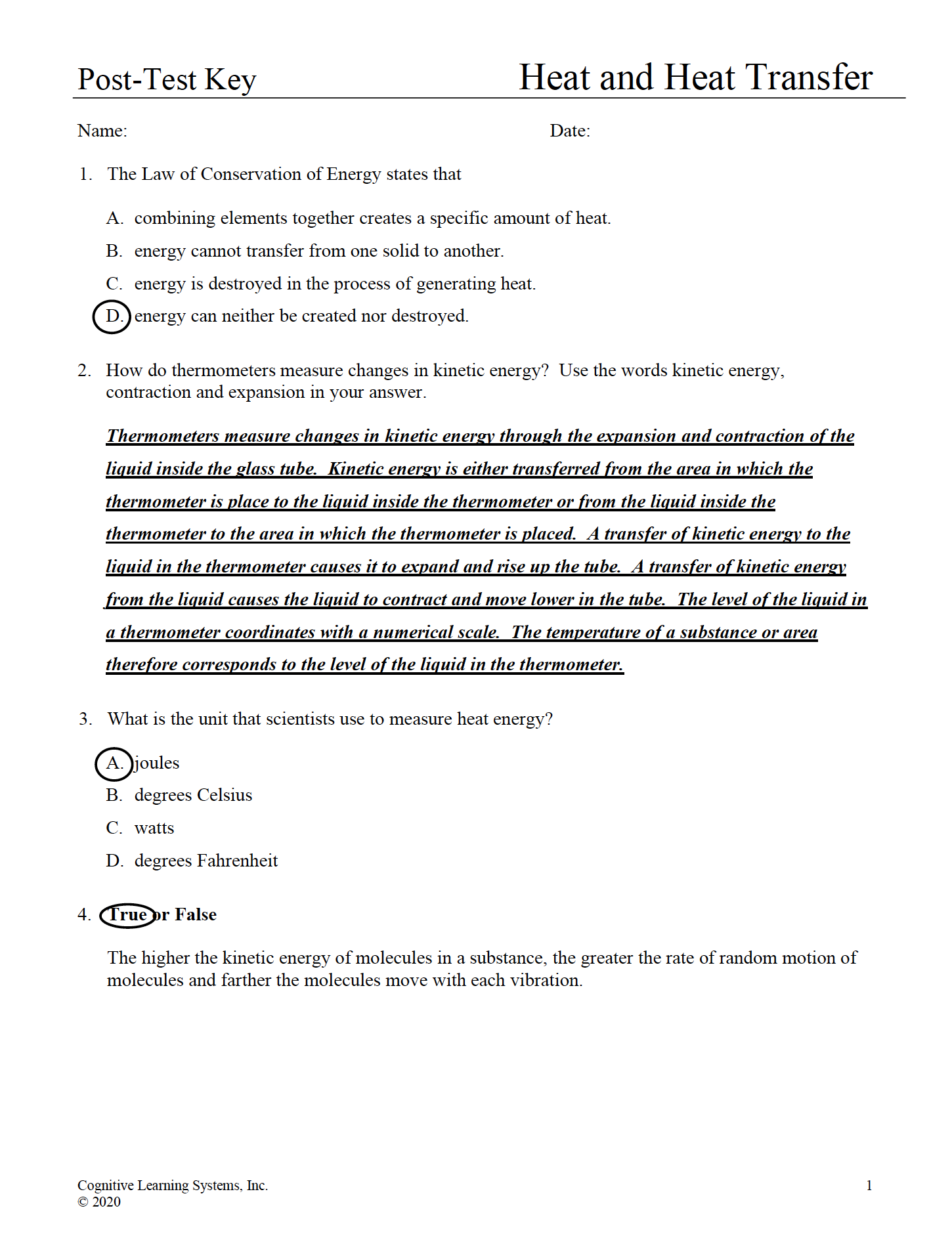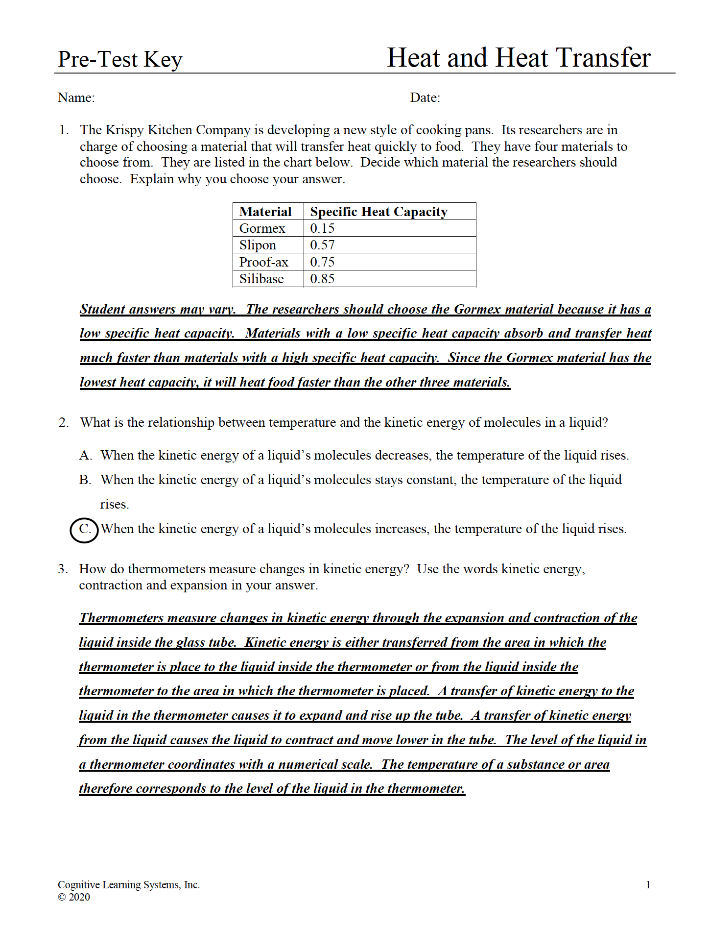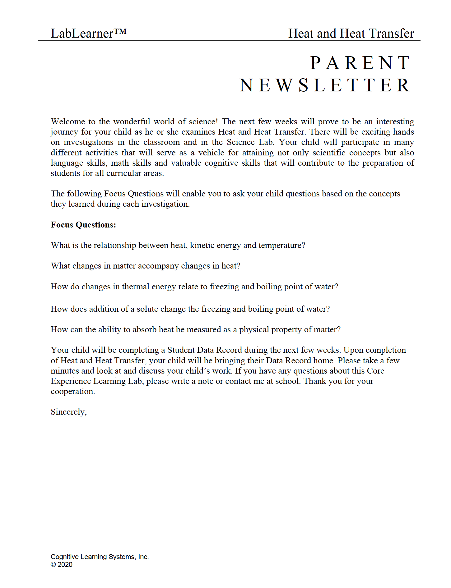 Complete Performance Assessment protocols are found in the Teacher’s Manual. Performance Assessment instructions are found in the Heat & Heat Transfer Student Data Records (SDR) as well.