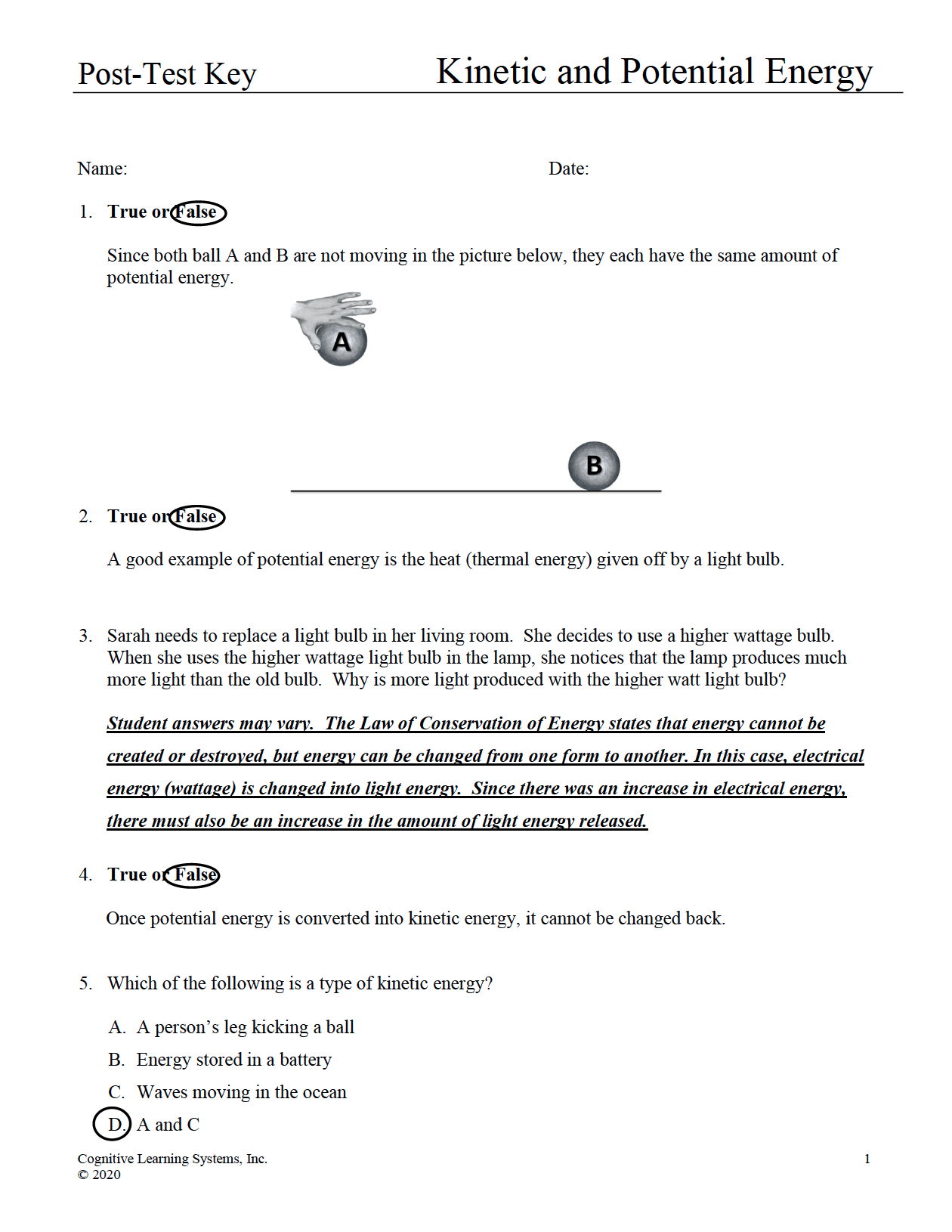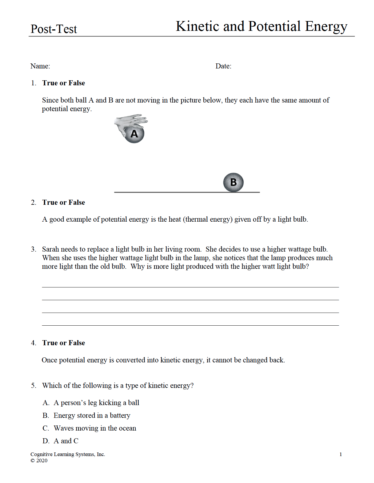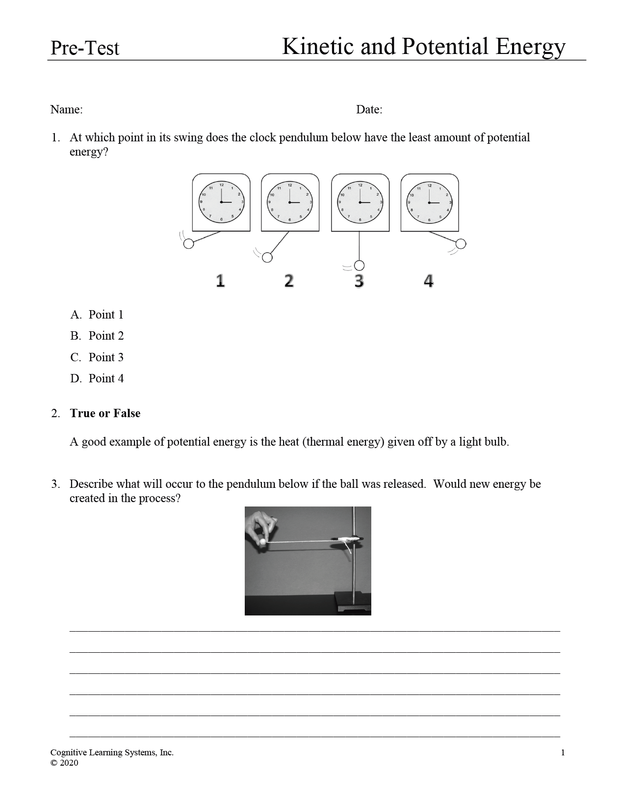 Kinetic and Potential Energy: Investigation 1 - Kinetic and Potential Energy