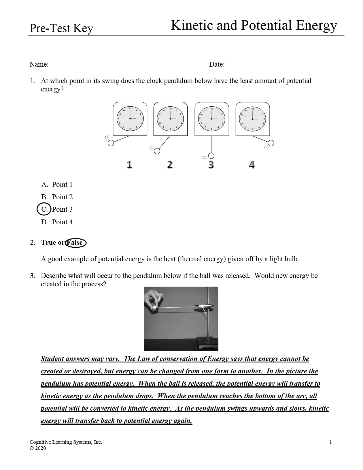 Kinetic and Potential Energy: Investigation 2 - Energy Conversion