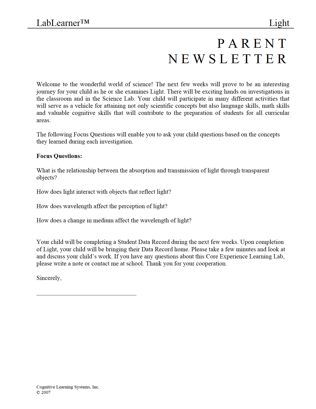 In Investigation Three, you will explore the relationship between light and the color of transparent substances. During this Investigation, you will: