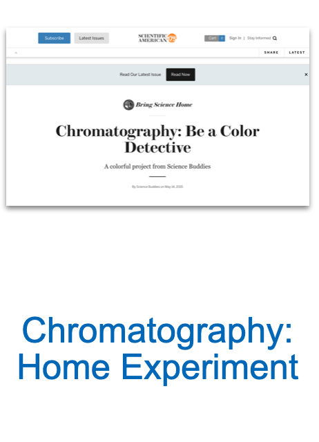 In Investigation One, you will be introduced to Photosynthesis by exploring the science of chromatography. During this Investigation, you will:
