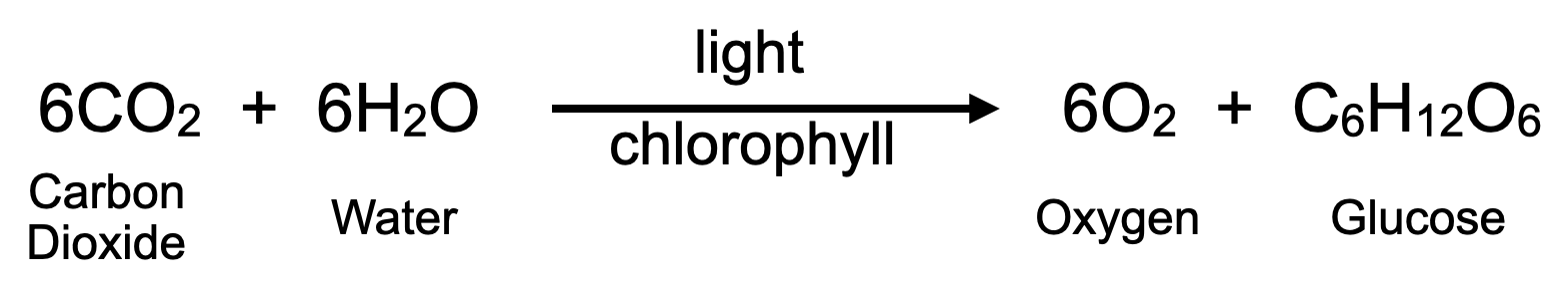 - As a class, review photosynthesis. If needed, refer to the following equation: