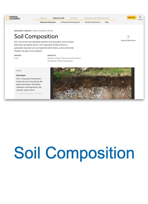 In Investigation three, students study the various components of soil that result from weathering and erosion. During this Investigation, students: