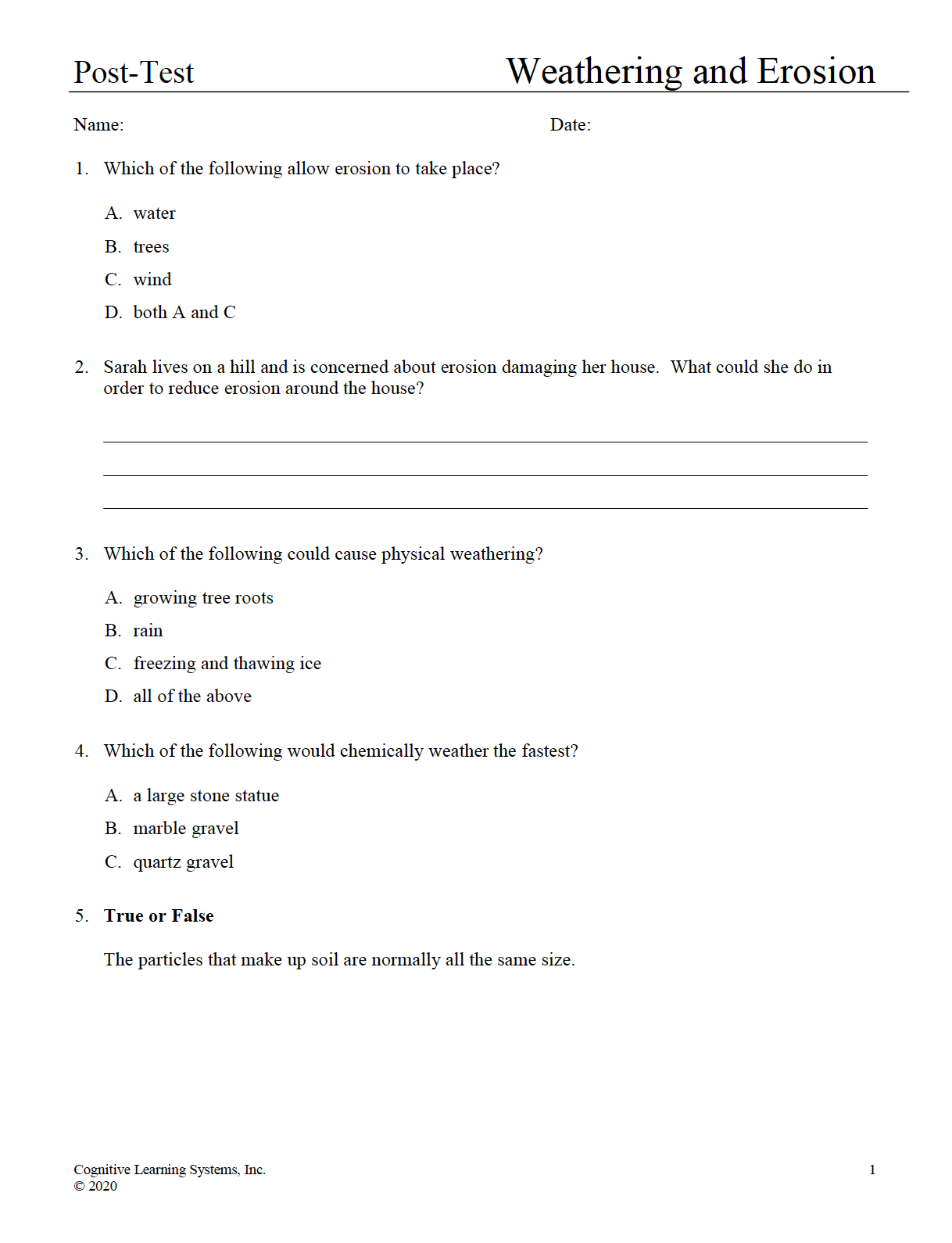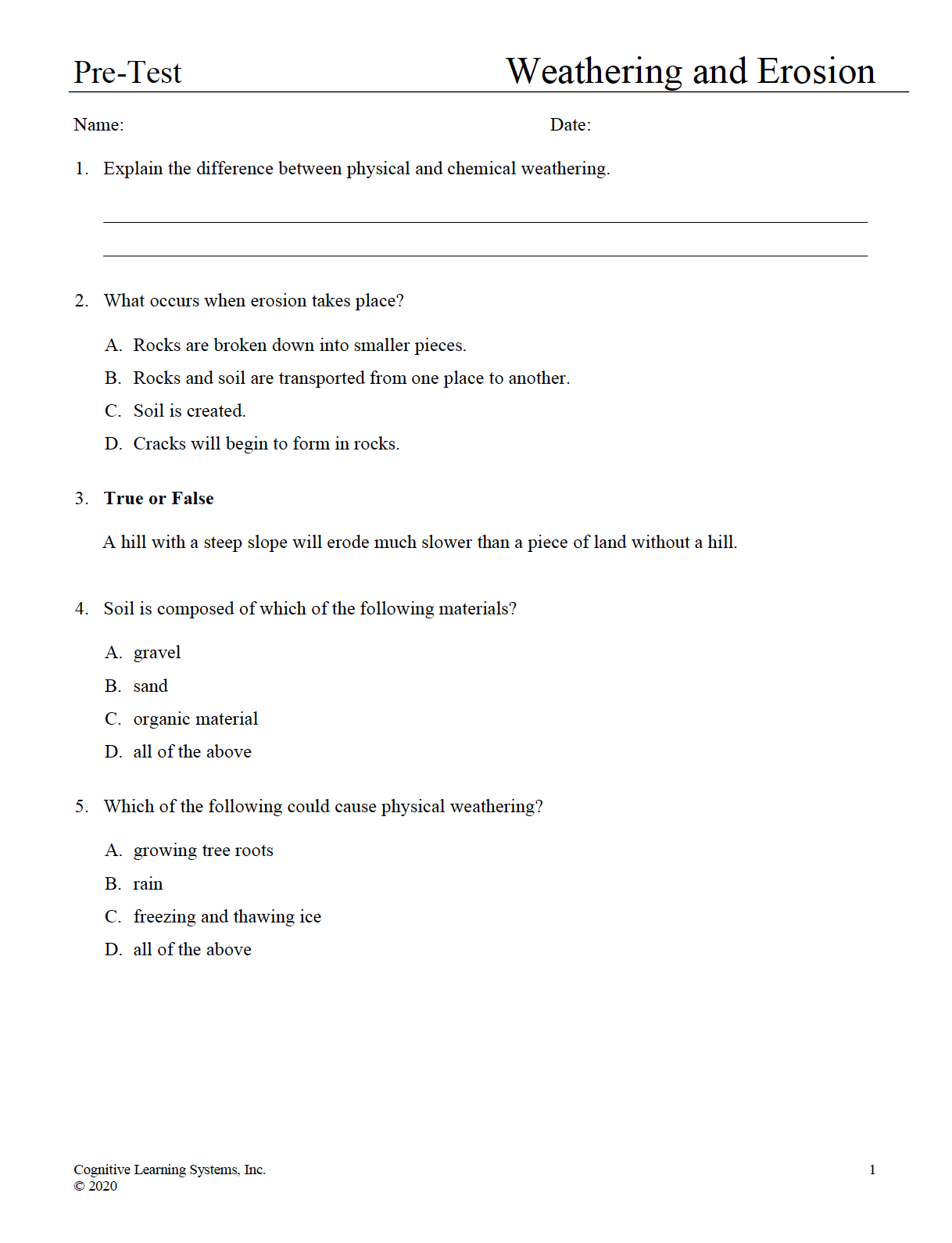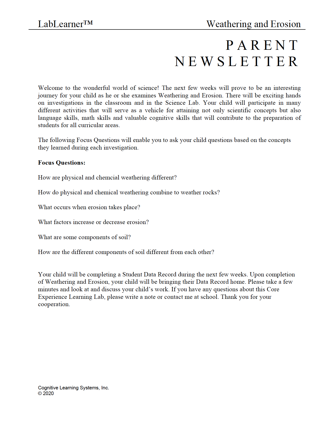 In Investigation One, students explore the chemical and physical weathering of rocks and minerals. During this Investigation, students will: