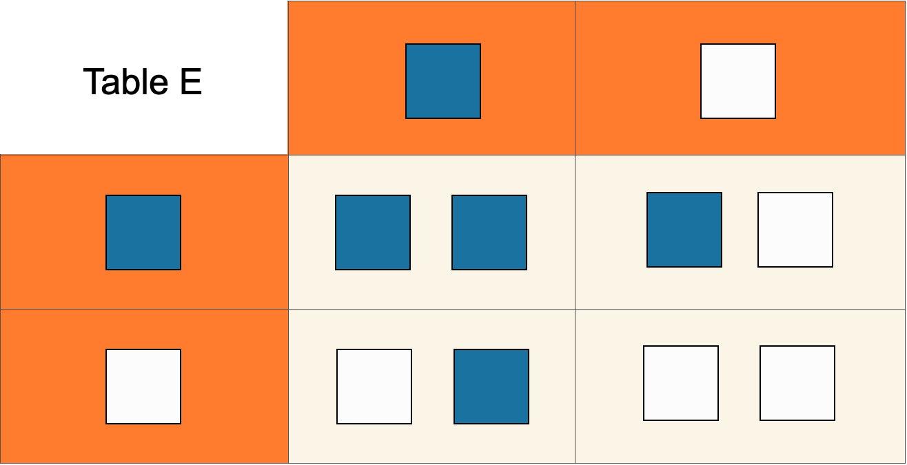 B. Place the alleles on the dark and light squares to the left of Table E.