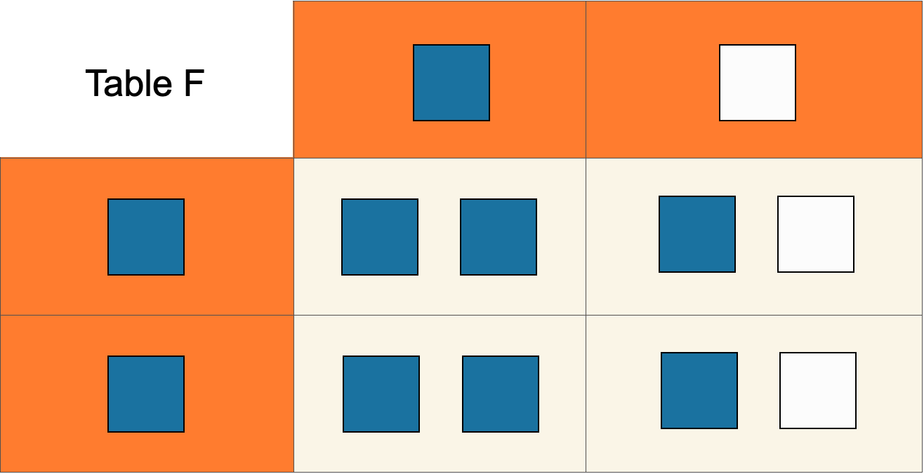 D. Place the alleles on the dark and light squares on the top of Table F.