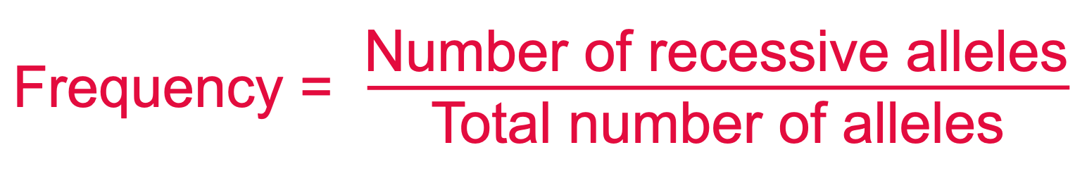 E. Record: Find the frequency of the recessive allele & record the number in Table E. Use a calculator to solve the following formula: