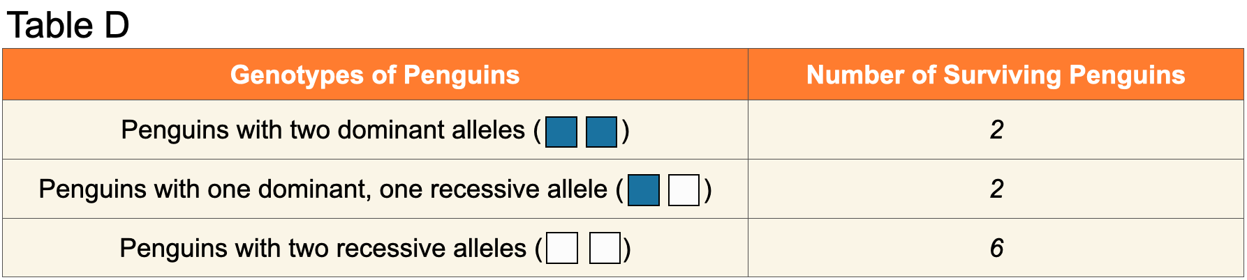 8. Record: For the surviving penguins, find the frequency of each allele.