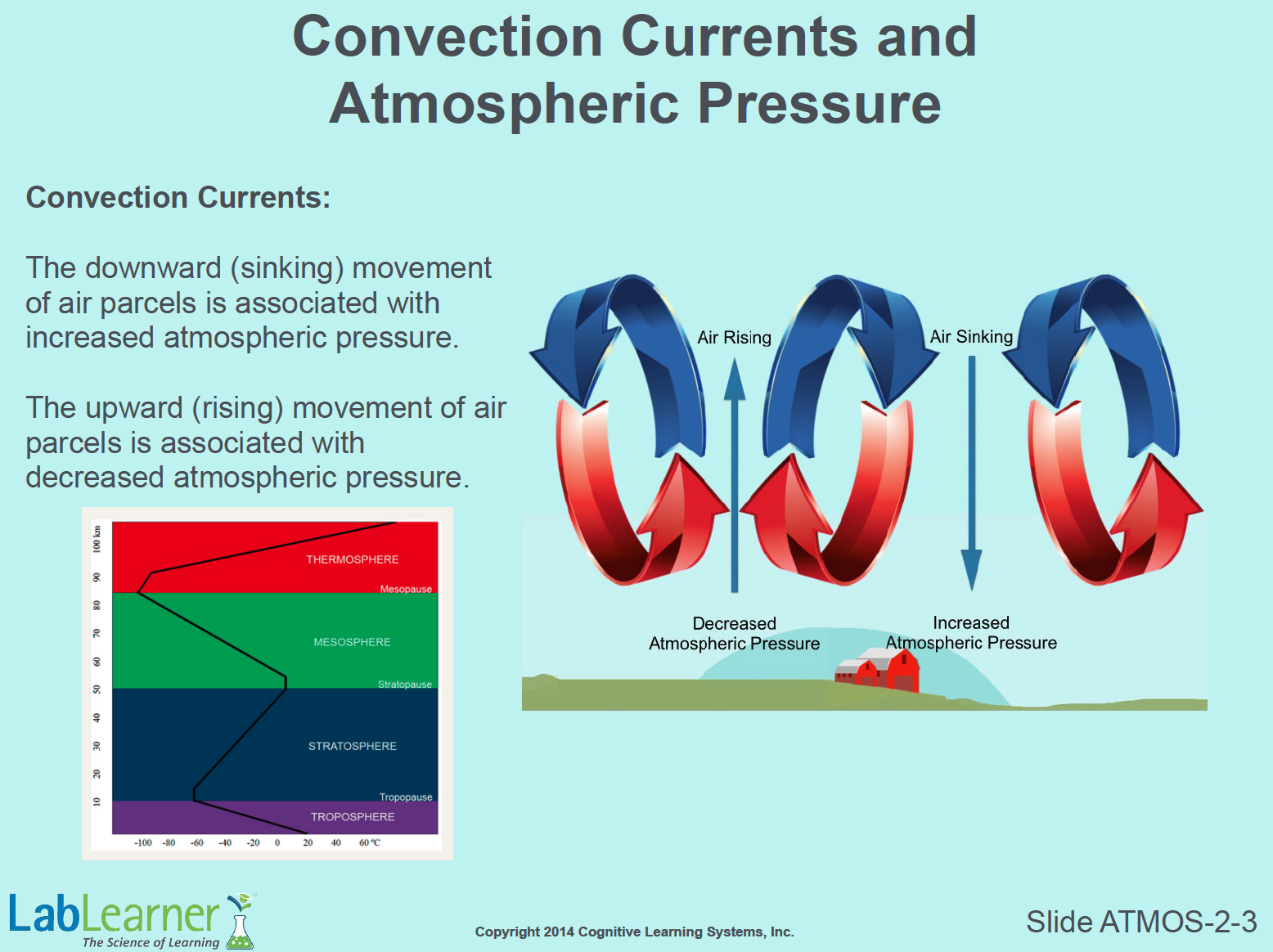 - This slide demonstrates the relation between rising and sinking air masses (parcels) and atmospheric pressure at the Earth’s surface.