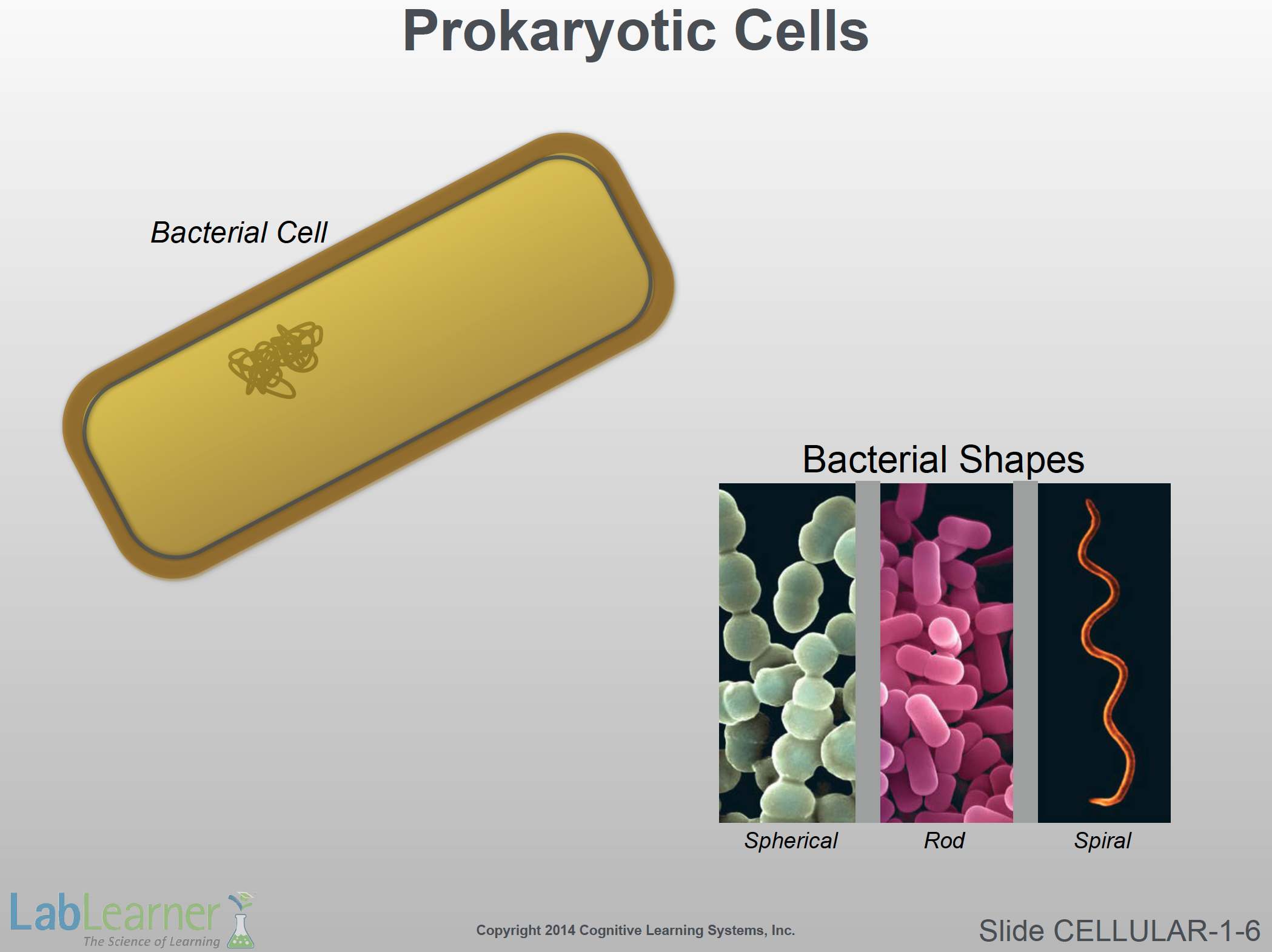 Note: In Investigation 1 Lab, students will have a chance to view bacteria in two of their six “unknown” slides. Bacteria are prokaryotes. This slide includes an insert that shows the three basic morphologies of bacterial cells; spherical, rod and spiral. Students will see the first two examples in Lab.