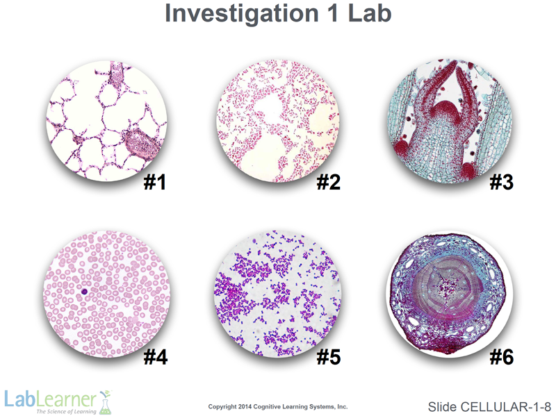 - This final slide simply shows a good microscopic view of the six specimens that students will examine in Investigation 1 Lab.