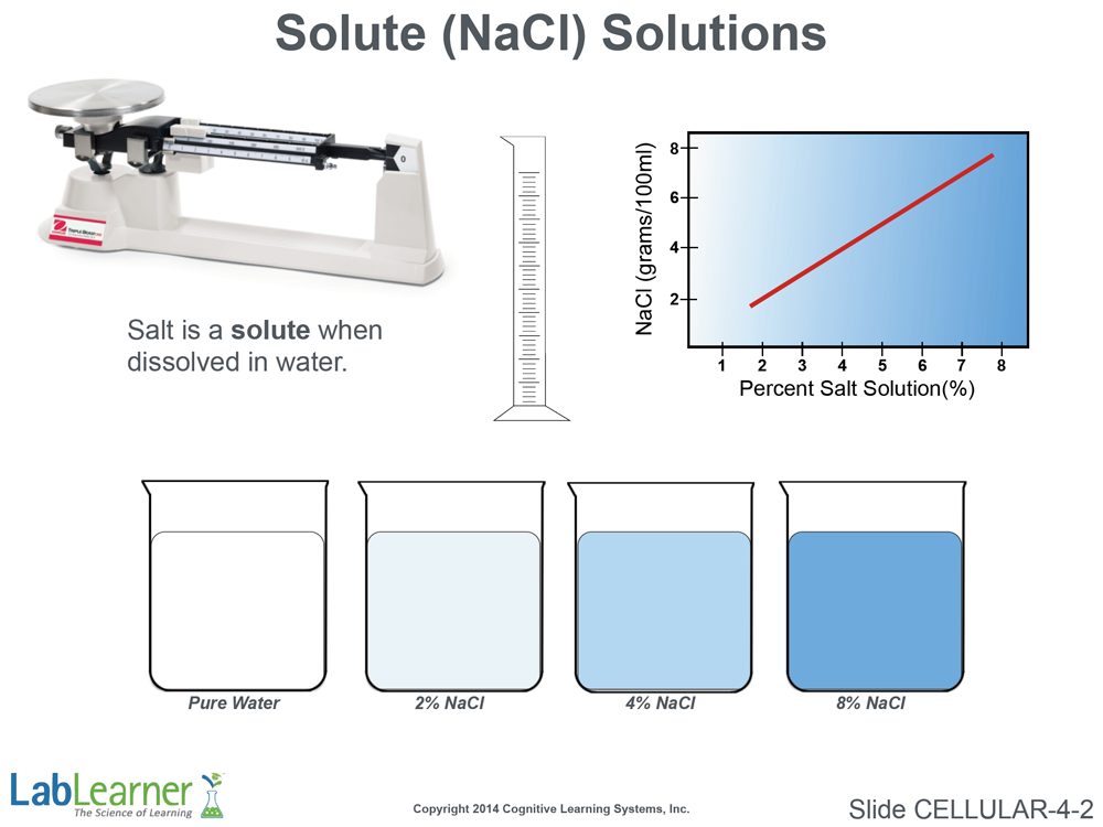 Note: While students do not actually prepare the salt solutions, they certainly could if they were given enough time. However, students should nonetheless understand how these solutions are prepared and that there are increasing amounts of solute as the salt concentration increases. This will have dramatic effects on cells.