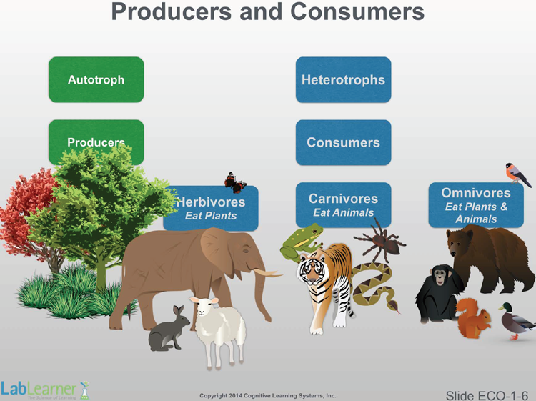 - In preparation for a discussion of the food web, this slide introduces some important major divisions of plants and animals.