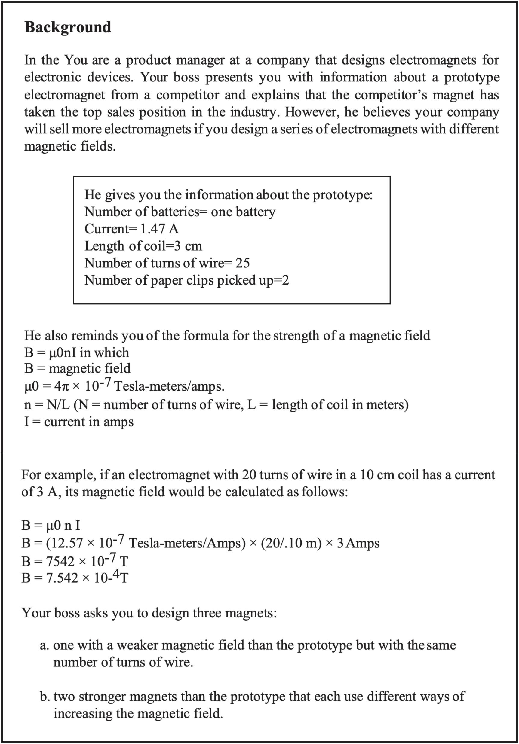 3. Briefly review with students the requirements for creating the three electromagnets and explain that all the information needed to complete the Performance Assessment is provided in the Background.
