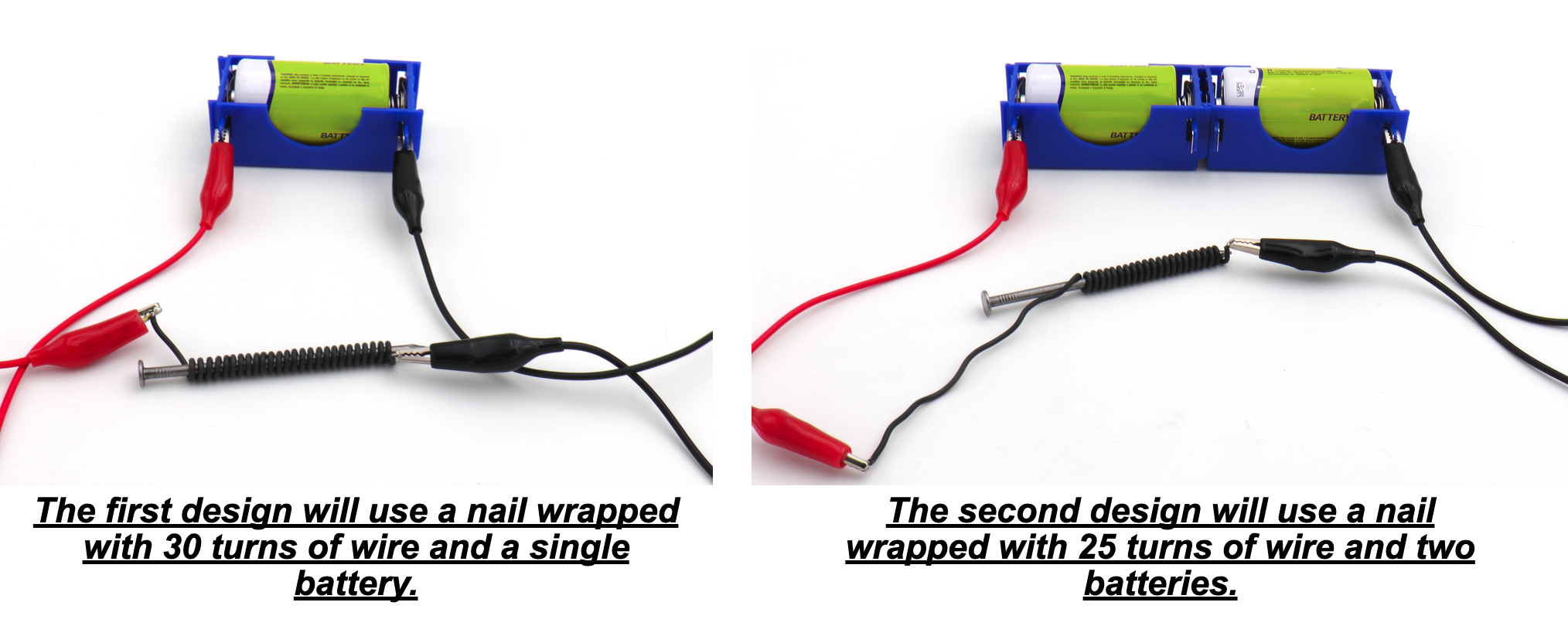 Note: Both methods for determining the strength of the electromagnets are presented above. Students may choose to use both, or only one of the methods when determining the strengths of their electromagnets.