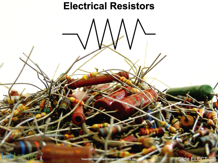 This is simply an introductory slide for resistors. While we have referred to resistance in devices such as hair driers and the filament of incandescent light bulbs, the term “resistor” is also used to refer to a specific type of electrical component. In this sense, a resistor is a component introduced into electrical circuits to resist electron flow and change the current.